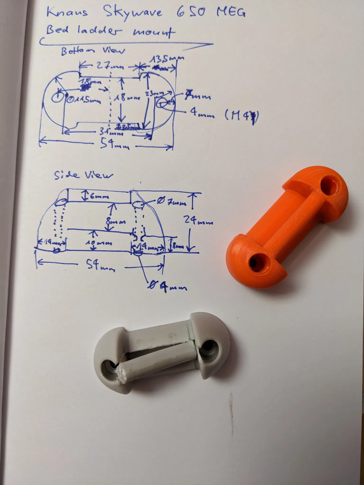 Đây là bản sao của giá đỡ nguyên bản và rõ ràng tại sao thiết kế dễ gãy ở hai điểm yếu chính vì tường giữa thanh ngang (nơi cầu thang móc vào) và bên cạnh chỉ có 1 mm ở giữa và 2 mm ở hai bên vì các lỗ vít được đặt rất tệ.
