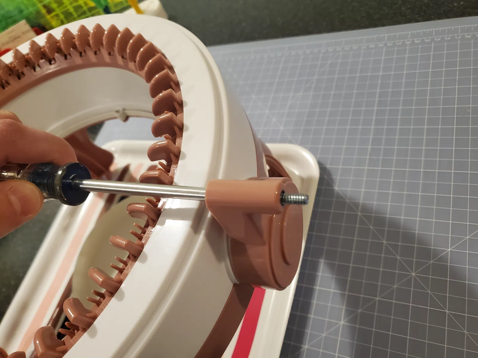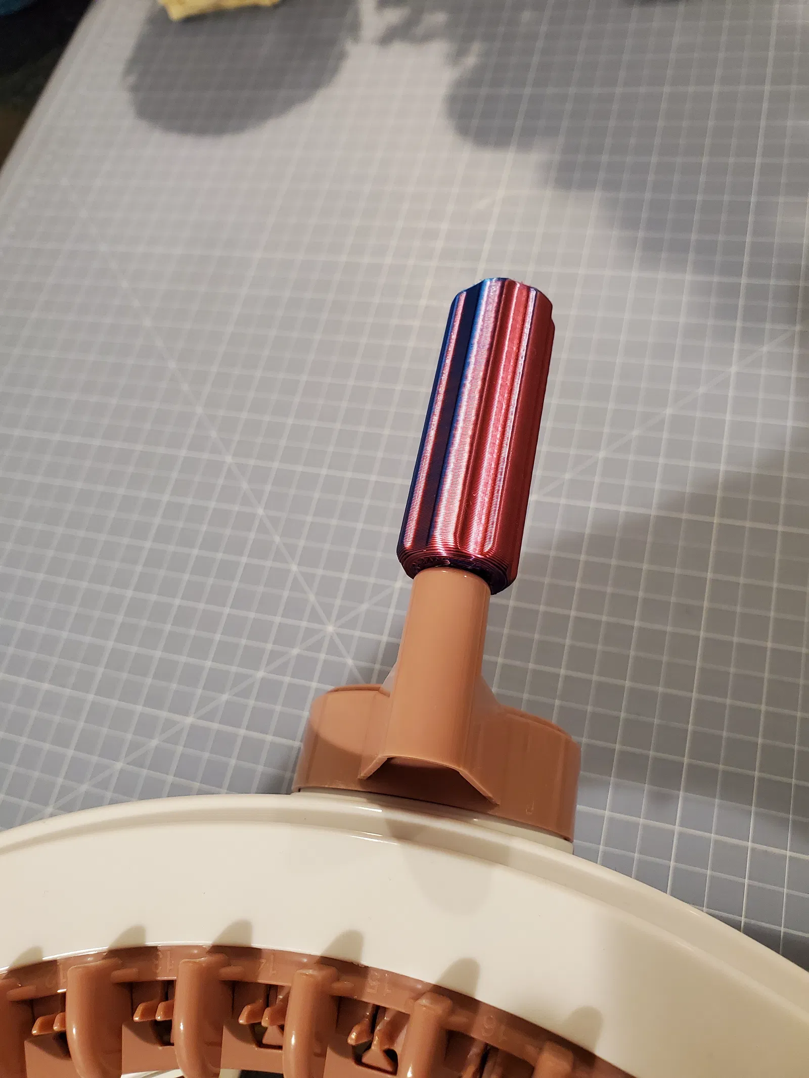 Nghe nói là bàn tay người lớn hay bị mỏi khi dùng cái tay quay dạng tròn trên máy đan Sentro; những tay cầm này sẽ giúp bạn thấy thoải mái hơn nhiều so với tay quay gốc. Thiết kế ban đầu của mình in hoàn toàn bằng PLA, nhưng tụi mình thấy phần trục dễ bị gãy--nên dùng nhựa PETG thì sẽ bền hơn. Mình đã tải sẵn các bản in cho Sentro48 và Sentro22 để bạn tiện sử dụng (lưu ý "trục" tay cầm có độ dài khác nhau giữa hai loại máy).