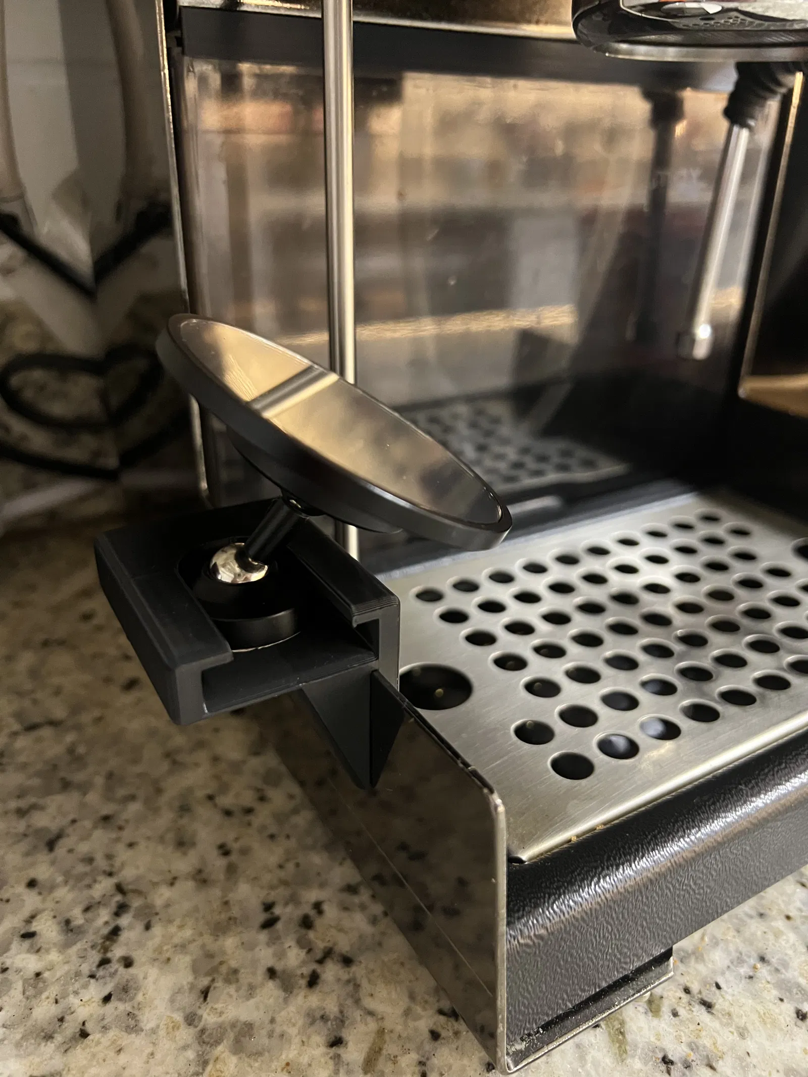 Giá đỡ dùng để gắn vào bên hông máy pha cà phê Gaggia Classic, giúp giữ gương soi shot espresso (xem đường link bên dưới).