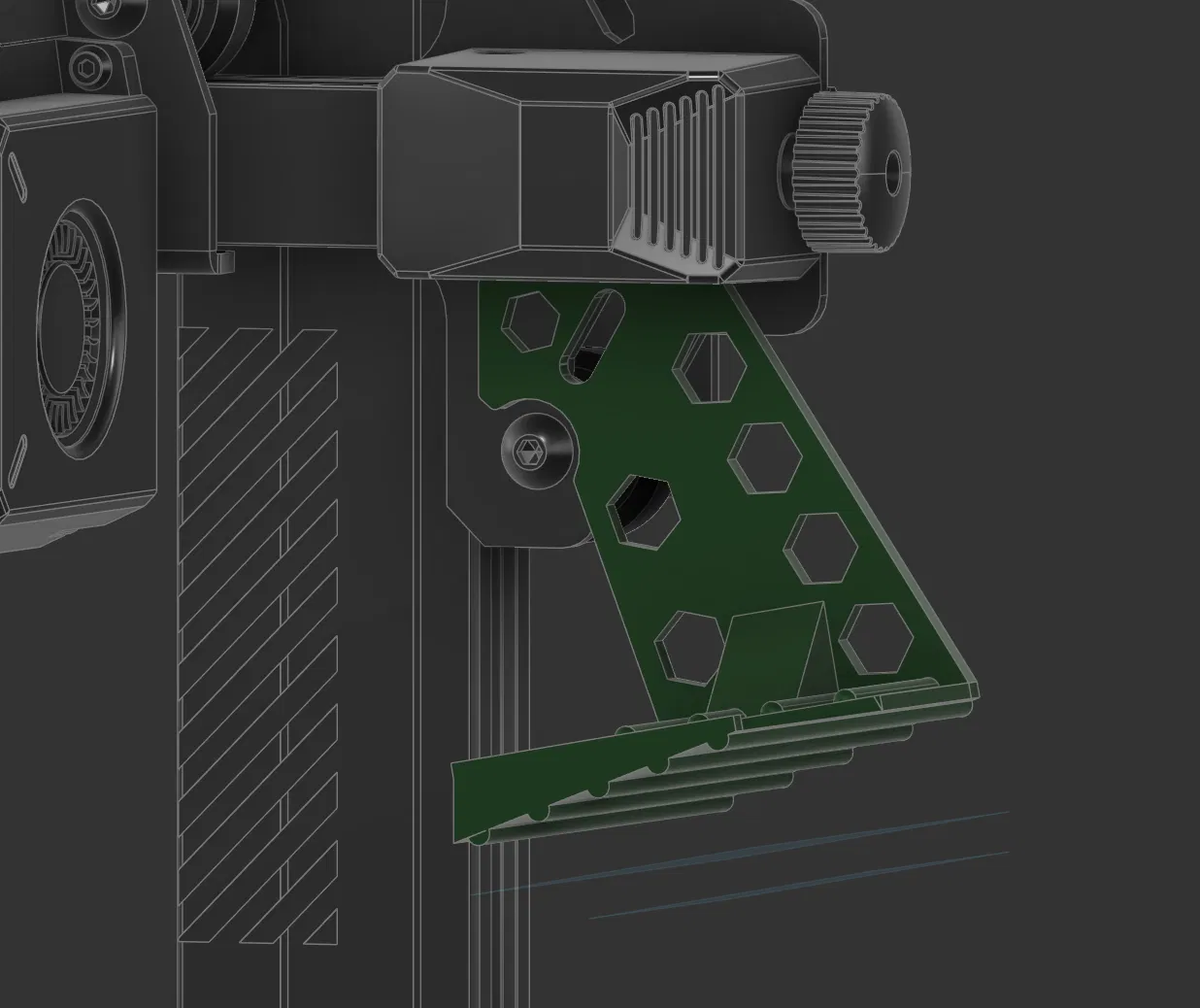 • Lắp đặt: Tận dụng các điểm bắt ốc có sẵn trên trục đứng của máy để gắn giá đỡ vào, đảm bảo vặn vít vừa phải để tránh làm nứt nhựa in.