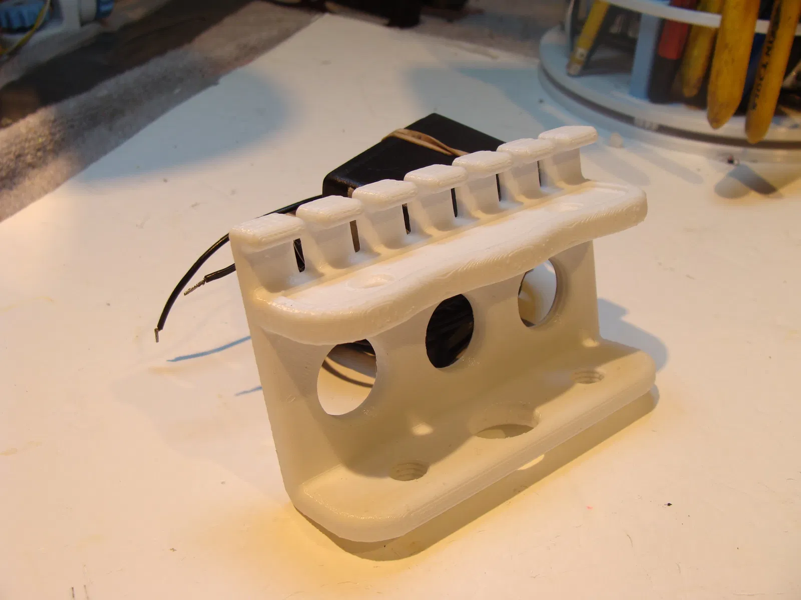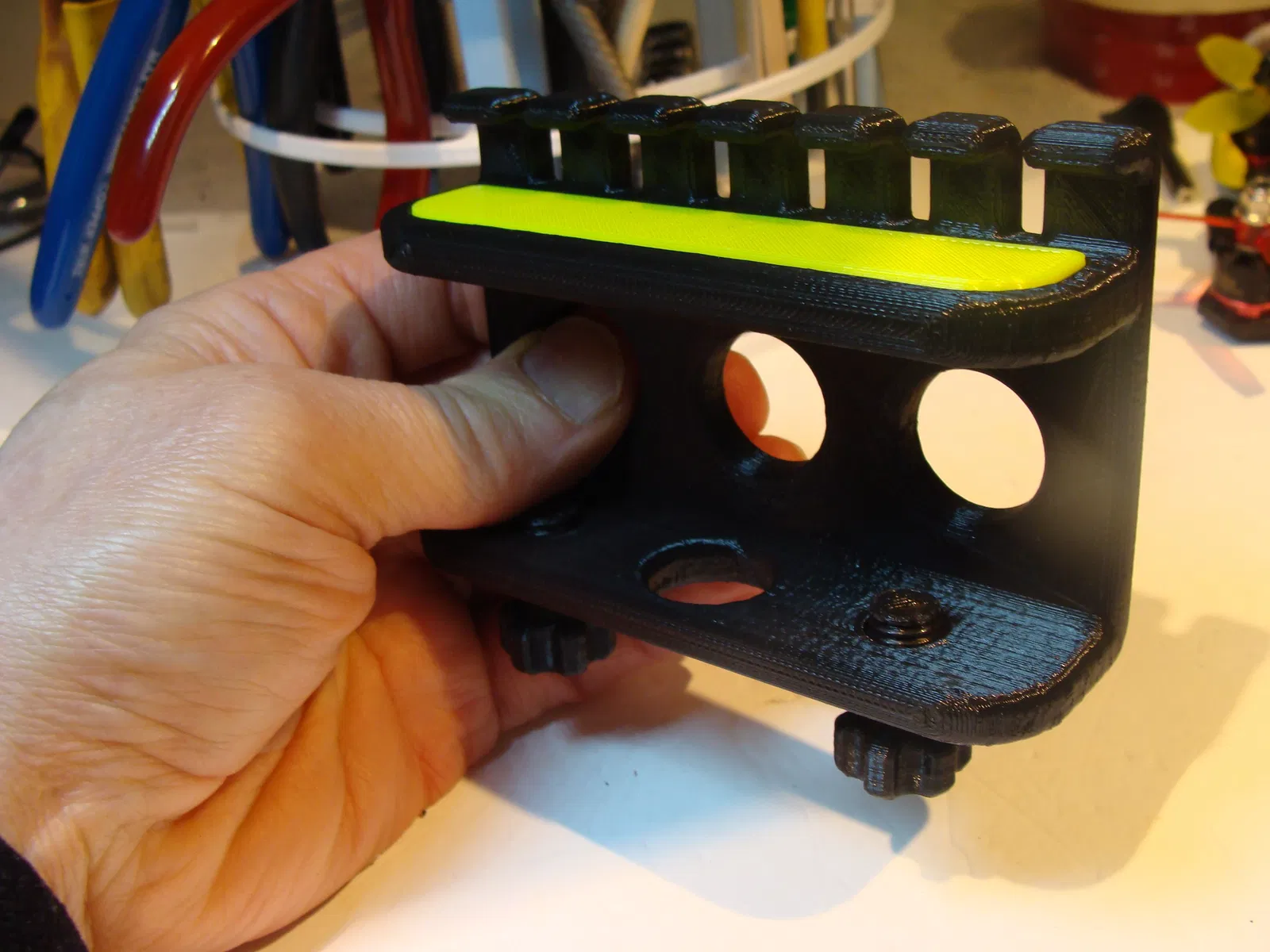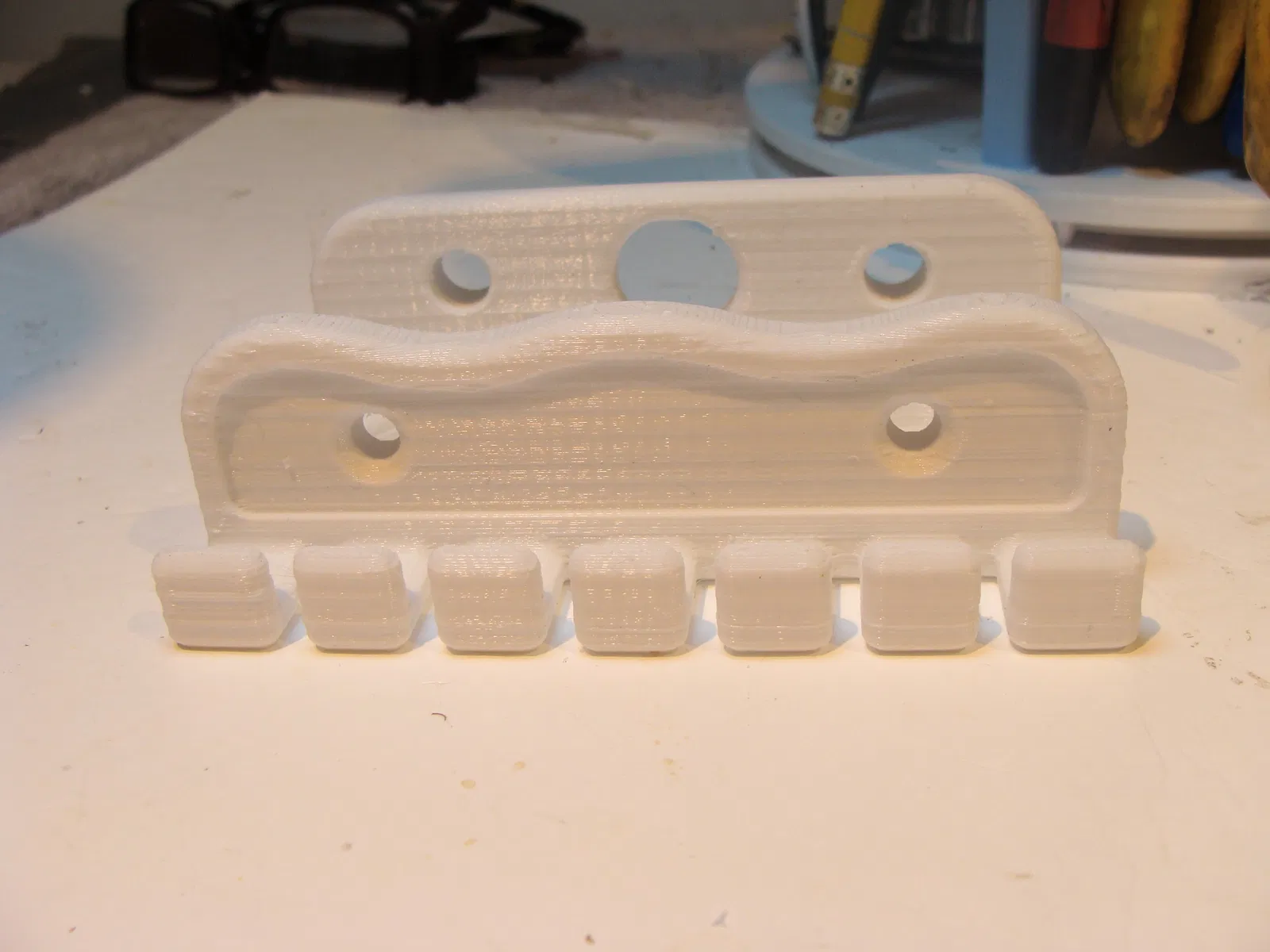Mình thiết kế cái bộ sắp xếp cáp USB (USB cable organizer) này để có thể dễ dàng di chuyển khi cần thiết. Mình đã đính kèm 4 phiên bản khác nhau: dạng thẳng và dạng cong có kèm miếng chèn (insert) khớp nối, cùng với đó là dạng thẳng và dạng cong không kèm miếng chèn. Đây là lần đầu mình thử thiết kế một sản phẩm lắp ráp (snap together), và kết quả khá là ổn. Mọi người gặp vấn đề gì thì cứ cho mình biết nhé. Thiết kế này mình làm cho loại bàn có độ dày tiêu chuẩn 38mm (1 1/2 inch). Nếu bàn của bạn có độ dày khác, cứ nhắn kích thước cho mình, mình sẽ cố gắng hỗ trợ mọi người.
