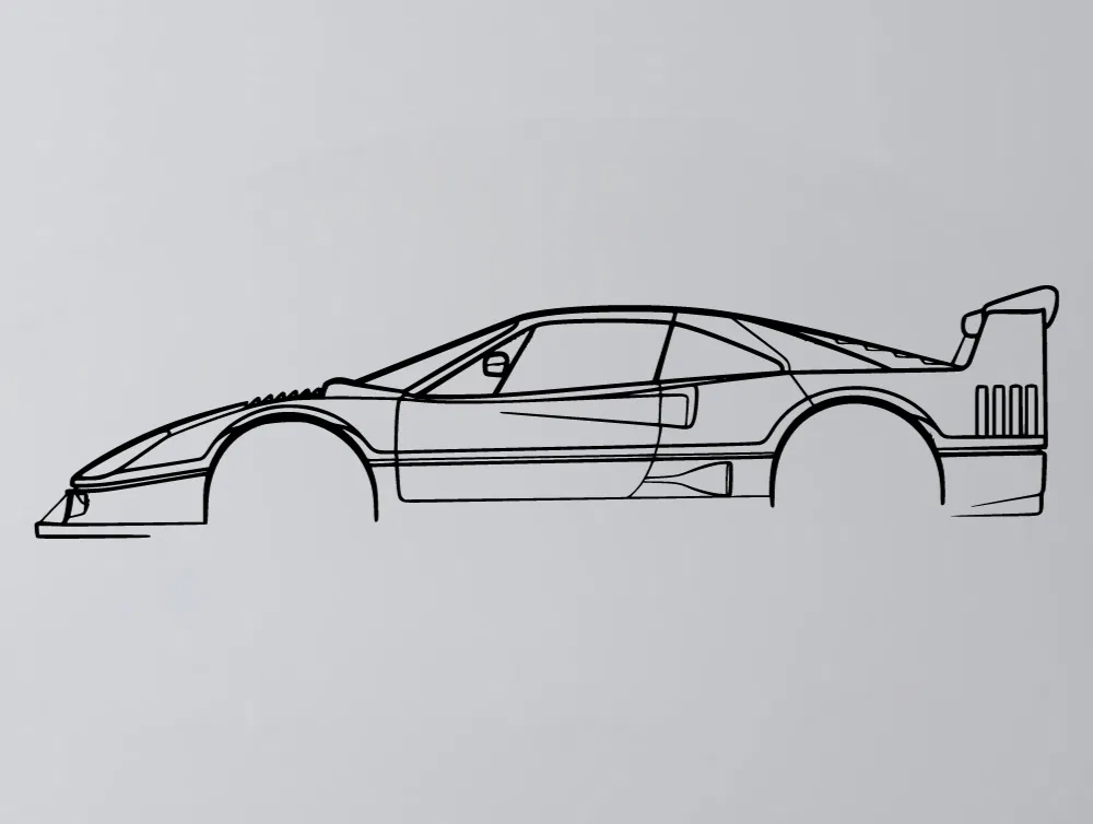 Mẫu tranh treo tường hình bóng (silhouette) của chiếc Ferrari F40 cực chất. File STL mặc định dài 40cm, dày 2mm. Dễ dàng in ấn, tùy chỉnh kích thước linh hoạt để trang trí cho không gian của bạn thêm phần cá tính và đam mê tốc độ.