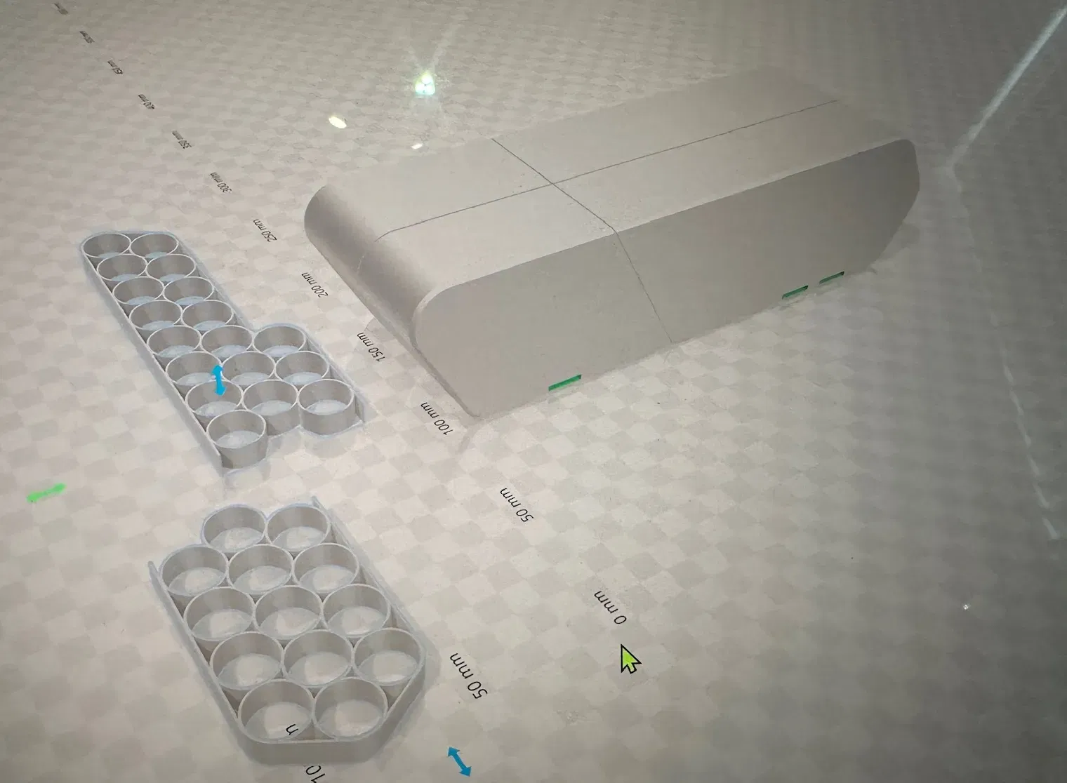 Bộ pin 10S3p với các khe cắm cho dây buộc, một khe pin sẽ trống hoặc có thể được gỡ bỏ để có thêm không gian cho BMS