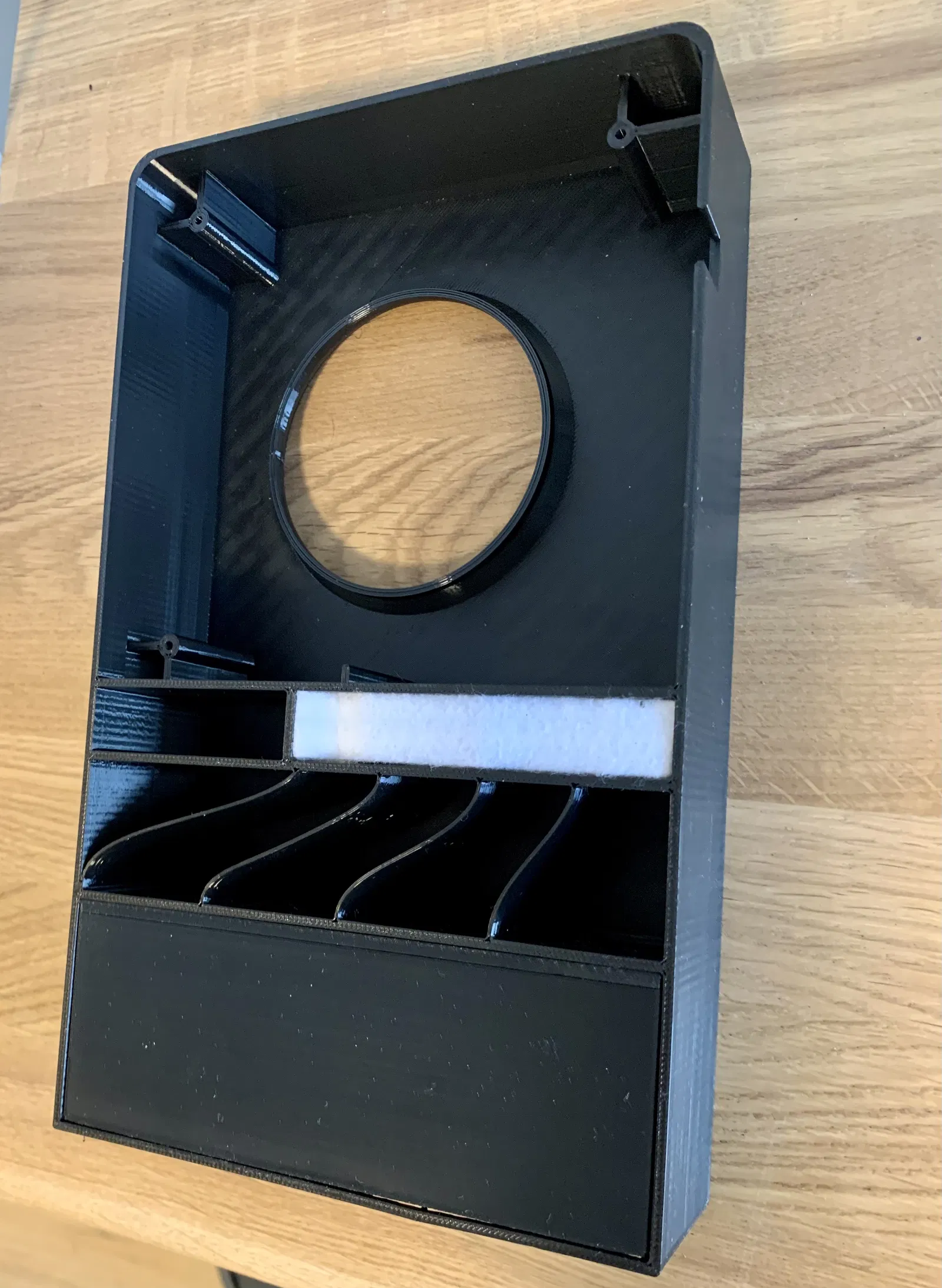 Việc in ngăn chứa than hoạt tính (Carbon-Compartment) có vẻ gây ra vài vấn đề nhỏ, nên bạn có thể in tách rời phần trên và phần dưới như gợi ý trong phần bình luận.