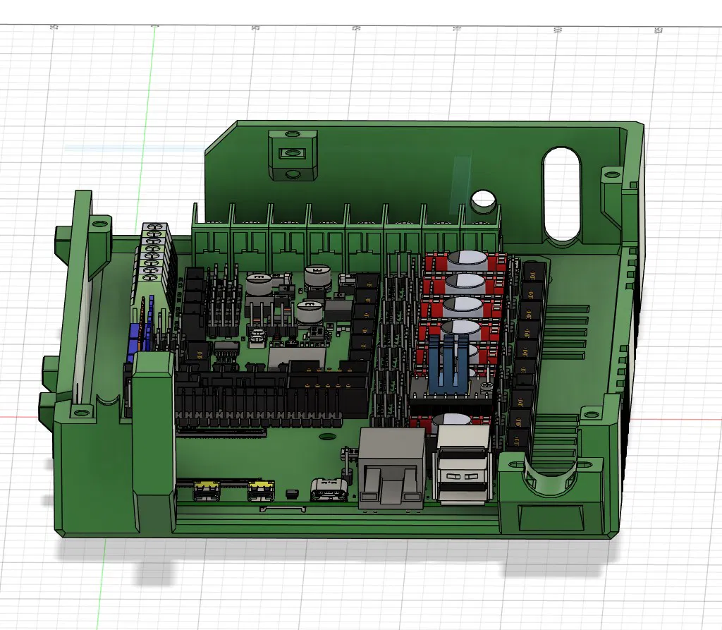 Đây là hộp bảo vệ (case) dành cho board BigTreeTech Manta M8P lắp trên máy in Caribou. Thiết kế đã tích hợp sẵn vị trí để lắp quạt tản nhiệt cho các driver motor và quạt tản nhiệt cho module CM4. Mình đã in thử bằng nhựa PETG với độ dày lớp in 0.2mm.
