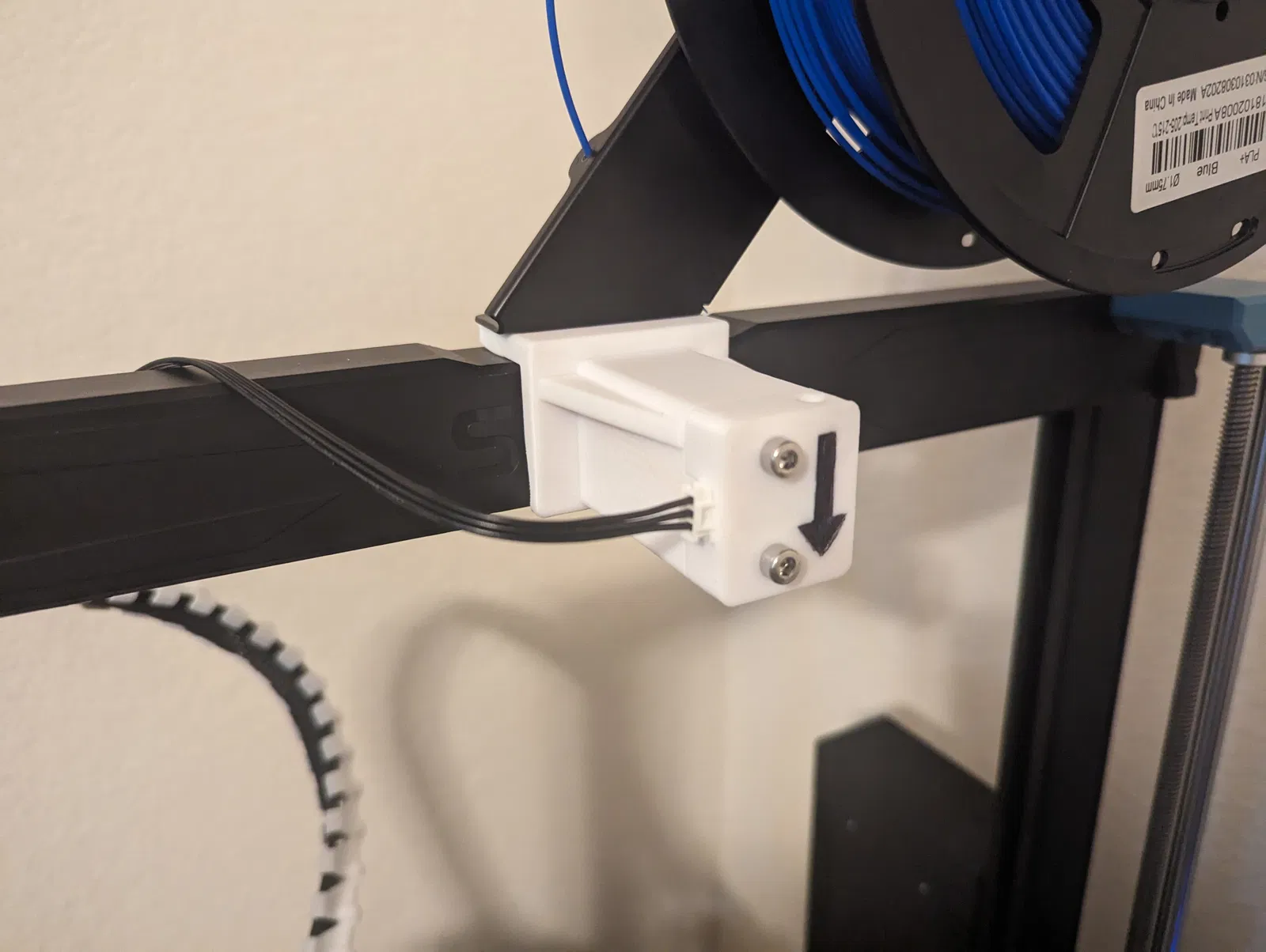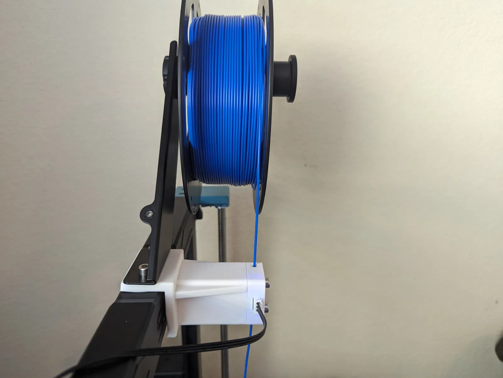 Cấu hình này yêu cầu lắp giá đỡ tay đòn vào bên dưới giá đỡ cuộn nhựa zin và bắt vít bằng 2 ốc lục giác M5x16mm (tùy chọn). Mình có sẵn ốc nên dùng luôn, tuy nhiên ốc 10mm zin có lẽ vẫn ổn, dù bạn sẽ chỉ giữ giá đỡ cuộn nhựa với phần ren 4mm trên ốc zin thôi. Mình đã làm phần giá đỡ khá chắc chắn vì trước đó mình đã thử qua mấy loại ngàm khác và bị hiện tượng flex (cong vênh) gây khó chịu, nên mới quyết định đăng bản thiết kế này.
