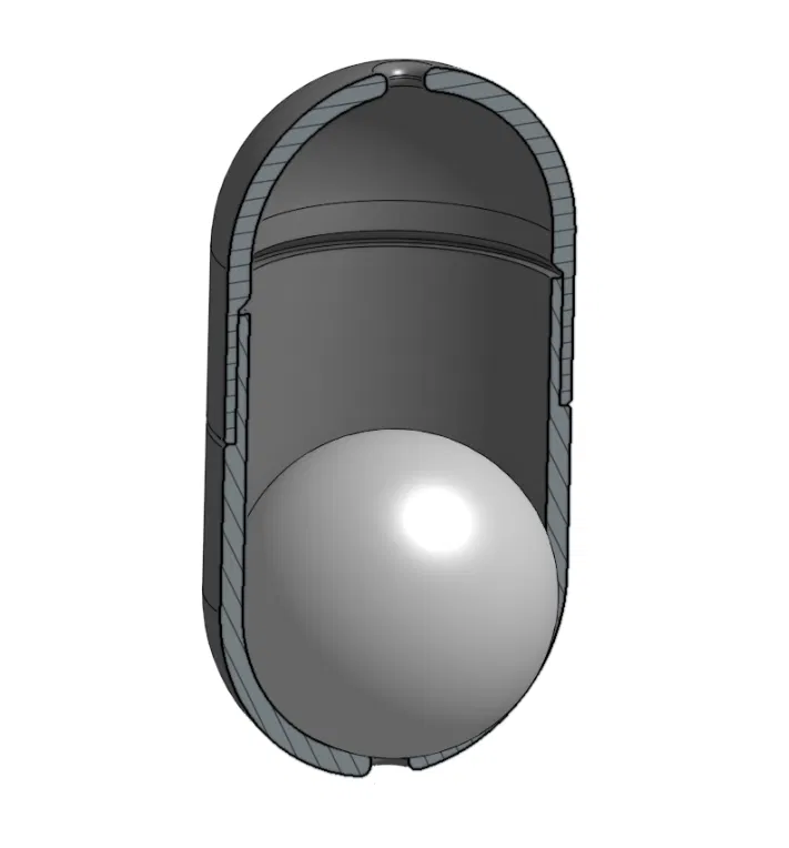 Để mô hình có thể hoạt động chính xác theo cơ chế con lật đật, bạn bắt buộc phải lắp thêm một viên bi thép có kích thước đường kính 12mm vào bên trong trước khi đóng nắp. Viên bi này đóng vai trò như một đối trọng, giúp hạt đậu luôn giữ được trạng thái cân bằng hoặc tạo ra các cú xoay bất ngờ. Thiết kế mô hình được chia thành hai phần có thể tháo lắp dễ dàng, cho phép bạn đưa viên bi vào bên trong một cách thuận tiện mà không cần dùng đến keo dán.