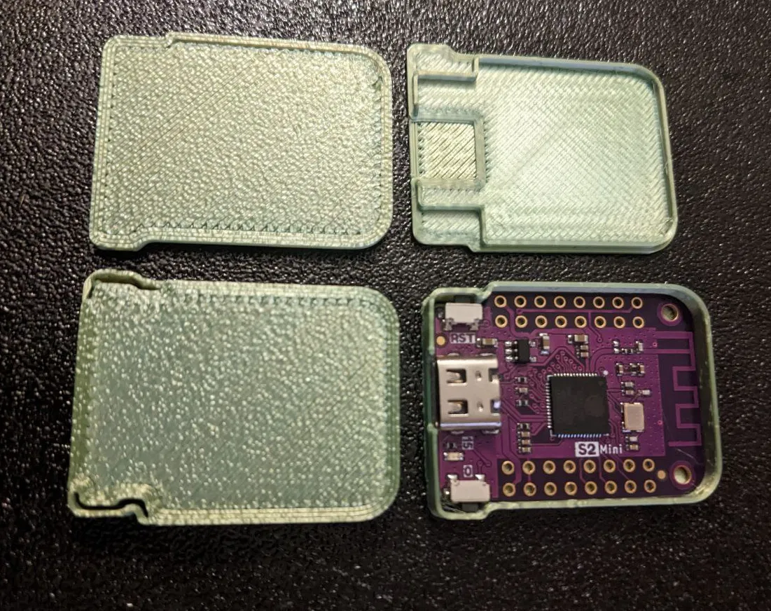 Mẫu case tối giản in cực nhanh cho ESP32 Wemos S2 Mini V1.0.0. Lưu ý bắt buộc phải sử dụng tính năng Arachne để đạt độ chính xác cho các vách mỏng và cơ chế khớp nắp. Phù hợp cho các dự án kết nối qua cổng USB.