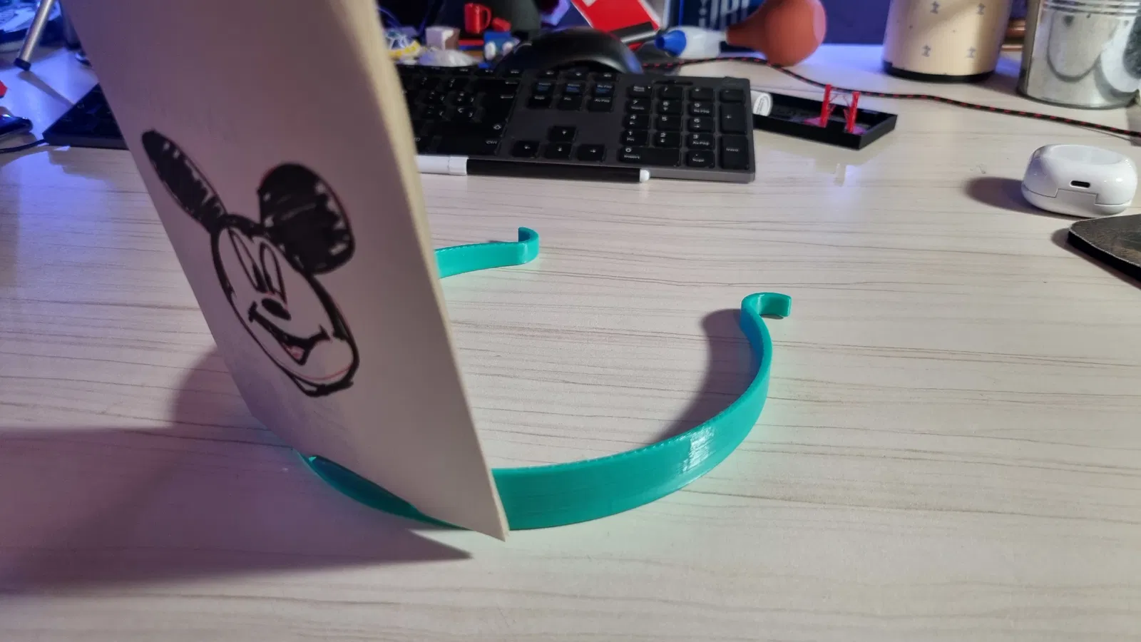 Sản phẩm này được thiết kế theo dạng vòng cung linh hoạt, ôm sát đầu người dùng một cách thoải mái. Phần kẹp phía trước được làm chuyên biệt để giữ các lá bài hoặc thẻ hình ảnh đứng vững, đảm bảo người chơi có thể thoải mái vận động mà không lo thẻ bị rơi. Bạn có thể dễ dàng in phụ kiện này tại nhà với chiếc máy in 3D quen thuộc và tùy biến màu sắc tùy thích để phù hợp với chủ đề của buổi chơi.