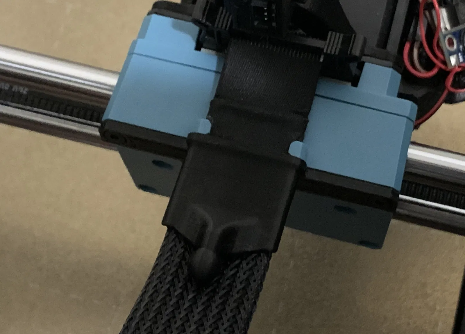 Link gắn vào Mainboard: Link này được kết hợp với AllanAus cable support. Nó cho phép đầu xích phía bo mạch chủ khóa chặt vào hộp mainboard để tăng độ chắc chắn. Cần có support (khuyên dùng kiểu organic). Để lắp đặt, bạn mở hộp mainboard bằng cách tháo ốc M4. Cắt dây rút đang giữ cáp đầu đùn vào hộp và gắn link đầu này vào. Nó được đúc vừa khít với khe hộp mainboard và chỉ lắp được theo một chiều duy nhất. Luồn cáp đầu đùn vào các tay của link và dùng dây rút mới buộc lại ở vị trí cũ (loại dây rút nhỏ đi kèm máy in là vừa khít). Đóng hộp mainboard lại và lắp các mắt xích còn lại như bình thường.