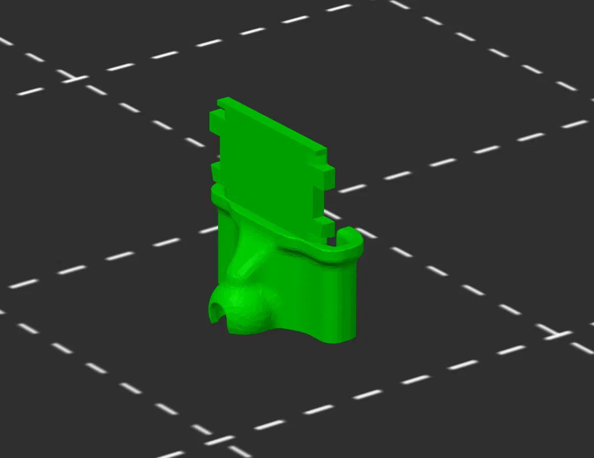 Link gắn vào Extruder: Link này được bổ sung thêm hai giá đỡ để bắt vít vào cụm đầu đùn (extruder carriage). Đối với SV06 Plus, bạn cần hai bu-lông chìm M3x25mm. Đối với SV06, bạn cần hai bu-lông chìm M3x20mm. In không cần support. Có ba kích thước khớp cầu để lựa chọn (cảm ơn void_foo về phần chia tỷ lệ). Hãy chọn kích thước vừa vặn nhất với xích của bạn. Cách lắp: tháo hai bu-lông phía trên của cụm đầu đùn, luồn cáp đầu đùn vào các tay của link, rồi cố định bằng hai bu-lông M3 có độ dài phù hợp vào cụm đầu đùn. Lắp phần xích còn lại như bình thường.