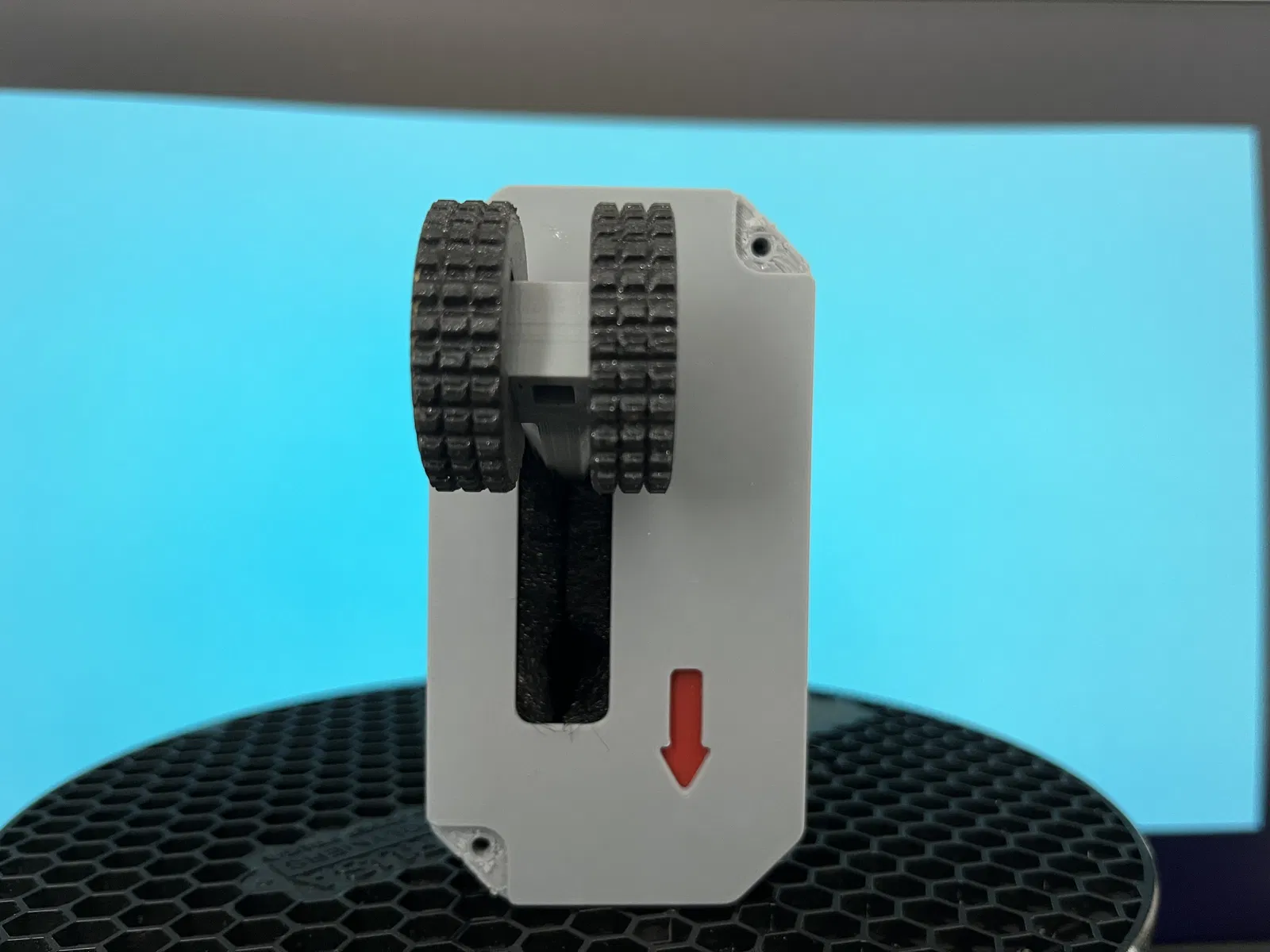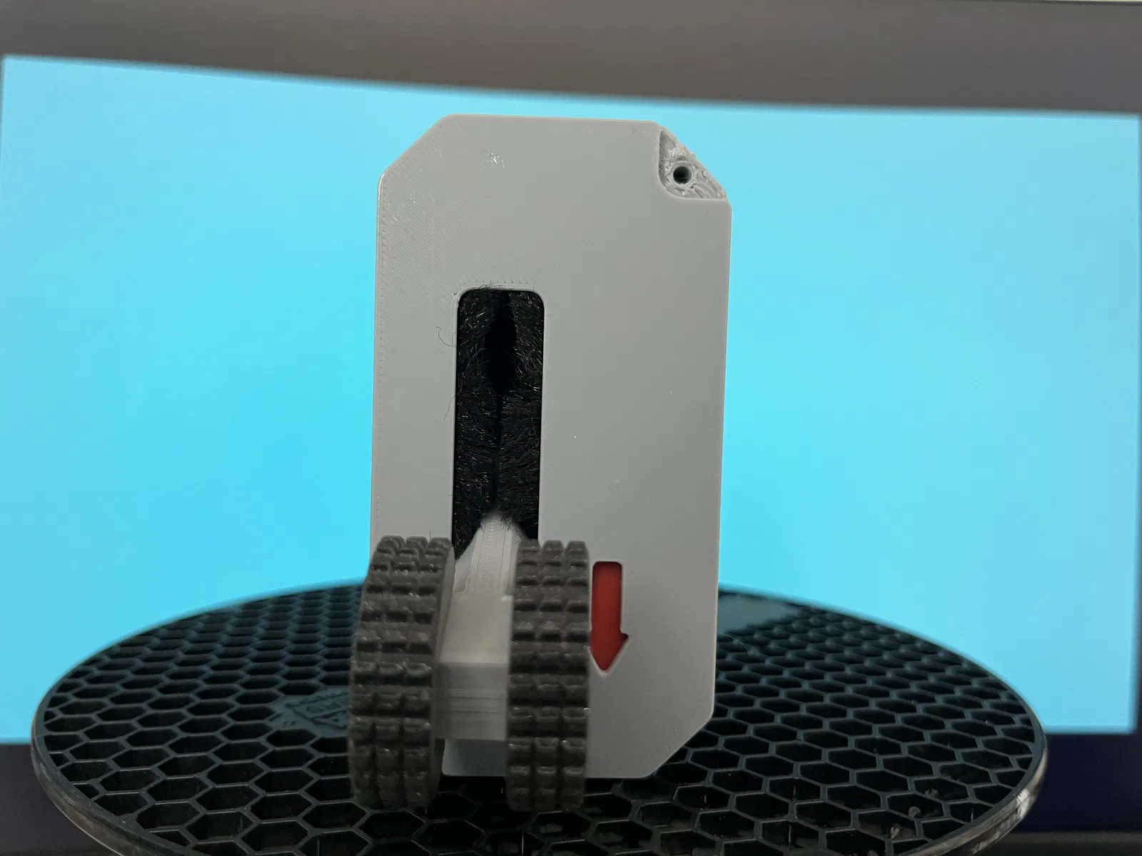 Đa số các bộ phận được in bằng PLA, chỉ một phần nhỏ của cần gạt là cần in bằng PETG.
