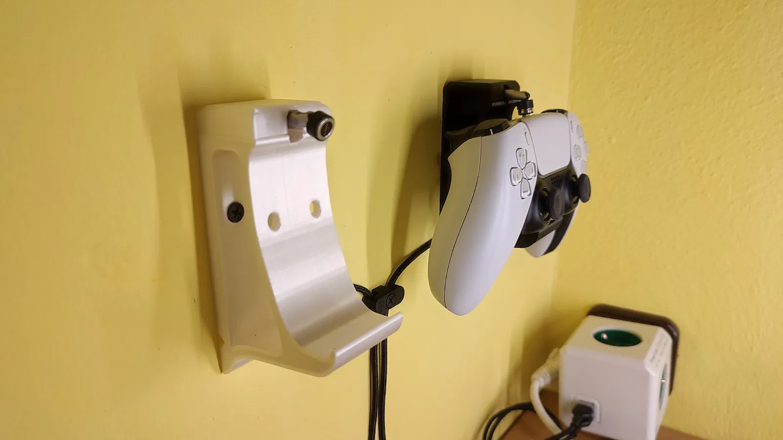 Đây là giá treo tường cho tay cầm DualSense của Playstation 5, có hỗ trợ gắn kèm cáp sạc từ tính.