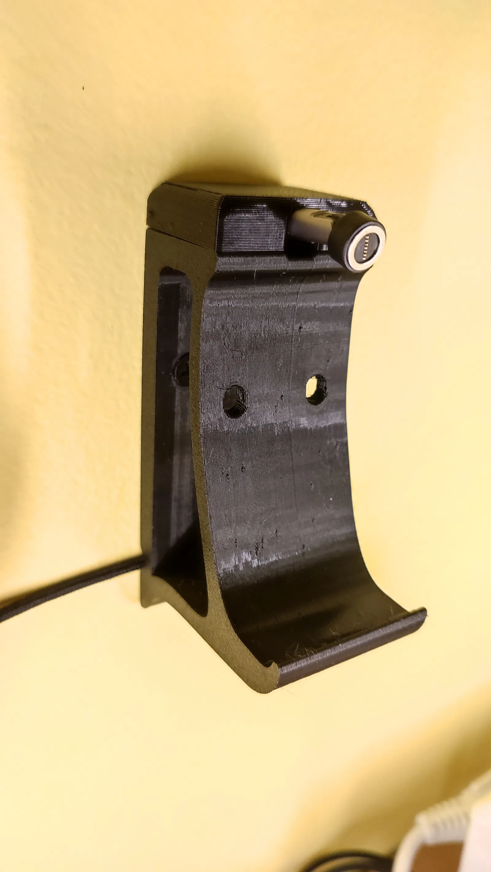 Giá treo tường dành cho tay cầm Playstation 5 DualSense, được thiết kế tích hợp chỗ để gắn cáp sạc từ tính vô cùng tiện lợi. File thiết kế đi kèm nắp che vít thẩm mỹ, in dễ dàng không cần support.