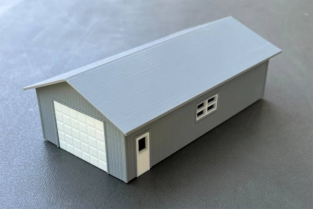 Mô hình nhà kho hoặc garage để xe RV tỉ lệ HO được thiết kế theo phong cách nhà gỗ. Sản phẩm bao gồm nhiều tùy chọn cửa cuốn, dễ dàng in ấn và có thể kết hợp cùng các phụ kiện mái tôn từ bộ sưu tập mô hình đường sắt của tôi.