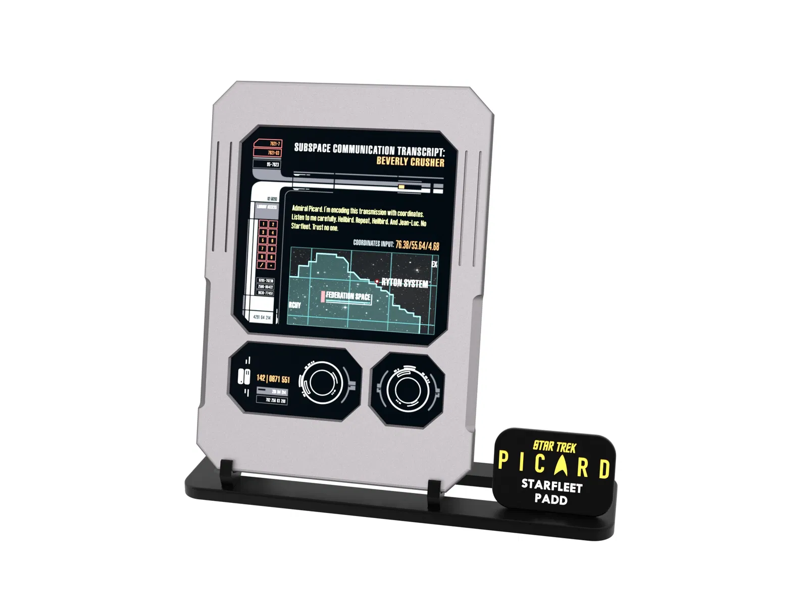 Đây là mẫu Starfleet PADD từ mùa cuối của loạt phim Picard do mình thiết kế. Sản phẩm có phần màn hình rời, giúp bạn dễ dàng thay đổi các hình ảnh hiển thị tùy ý.
