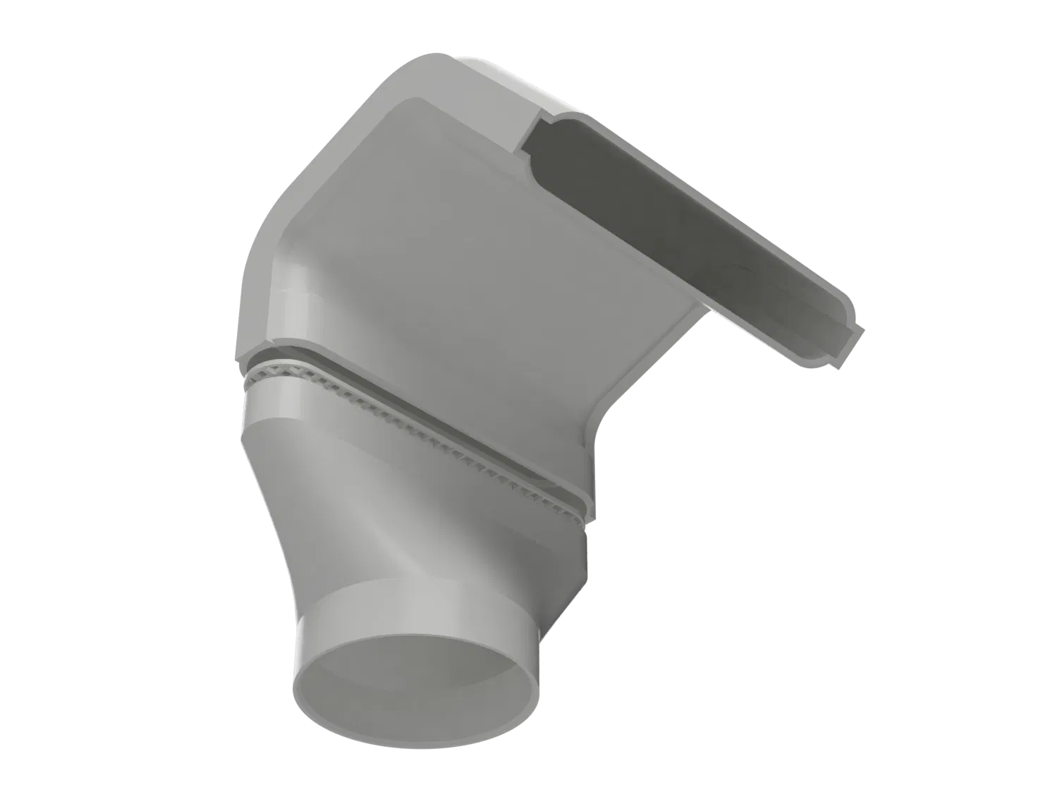 Đây là bộ phận ống thông gió để gắn vào cửa sổ kèm đầu chuyển đổi ống dẫn khí 100mm. Bạn có thể treo nó trên cửa sổ hất hoặc đặt nằm ngang trên cửa sổ thông thường. Diện tích thoát khí khoảng 62 cm², khá sát với diện tích của ống dẫn là 65 cm² (trường hợp xấu nhất), nên sẽ không làm cản trở lưu lượng gió quá nhiều. Đây là một phần trong bộ sưu tập Printer Enclosure Ventilation của mình. #### Hướng dẫn in Mẫu thiết kế được chia thành 3 phần để dễ in hơn. Phần ống thoát (đoạn uốn cong) có các cạnh phẳng giúp bám dính tốt vào bàn in, không cần hỗ trợ (support) cho toàn bộ chiều dài, tuy nhiên khuyến khích đặt một support nhỏ ở phần tròn nơi gắn vào đầu chuyển đổi (file đính kèm đã có sẵn support). Độ dung sai là 0.25mm. > CẢNH BÁO: Mình chưa trực tiếp in/thử nghiệm các phiên bản 150mm. Vui lòng tham khảo phần "makes" từ những người dùng khác đã kiểm chứng. #### Cập nhật 09/09/2025 r.4: Thêm bộ 150mm: loại 65% (vừa với bàn in MK4) và 100% (đủ diện tích ống dẫn). 05/08/2025 r.3: Thêm đầu chuyển đổi ống 150mm. 28/07/2025 r.2: Thêm file step. 08/07/2025 r.1: Thêm file stl, thay thế 3mf bằng mesh độ phân giải cao hơn. Đây là đầu chuyển đổi lớn hơn khớp với ống xả gốc. **Diện tích ống/đầu chuyển 150mm là ~175 cm². Phiên bản 65% có diện tích ~115 cm², vừa khít với bàn in MK4. Phiên bản 100% là 175 cm². Lưu ý là thông số này chưa tính đến lưới chắn hay độ cong của ống, vốn sẽ làm giảm lưu lượng khí. #### Bản vẽ (đơn vị: mm)