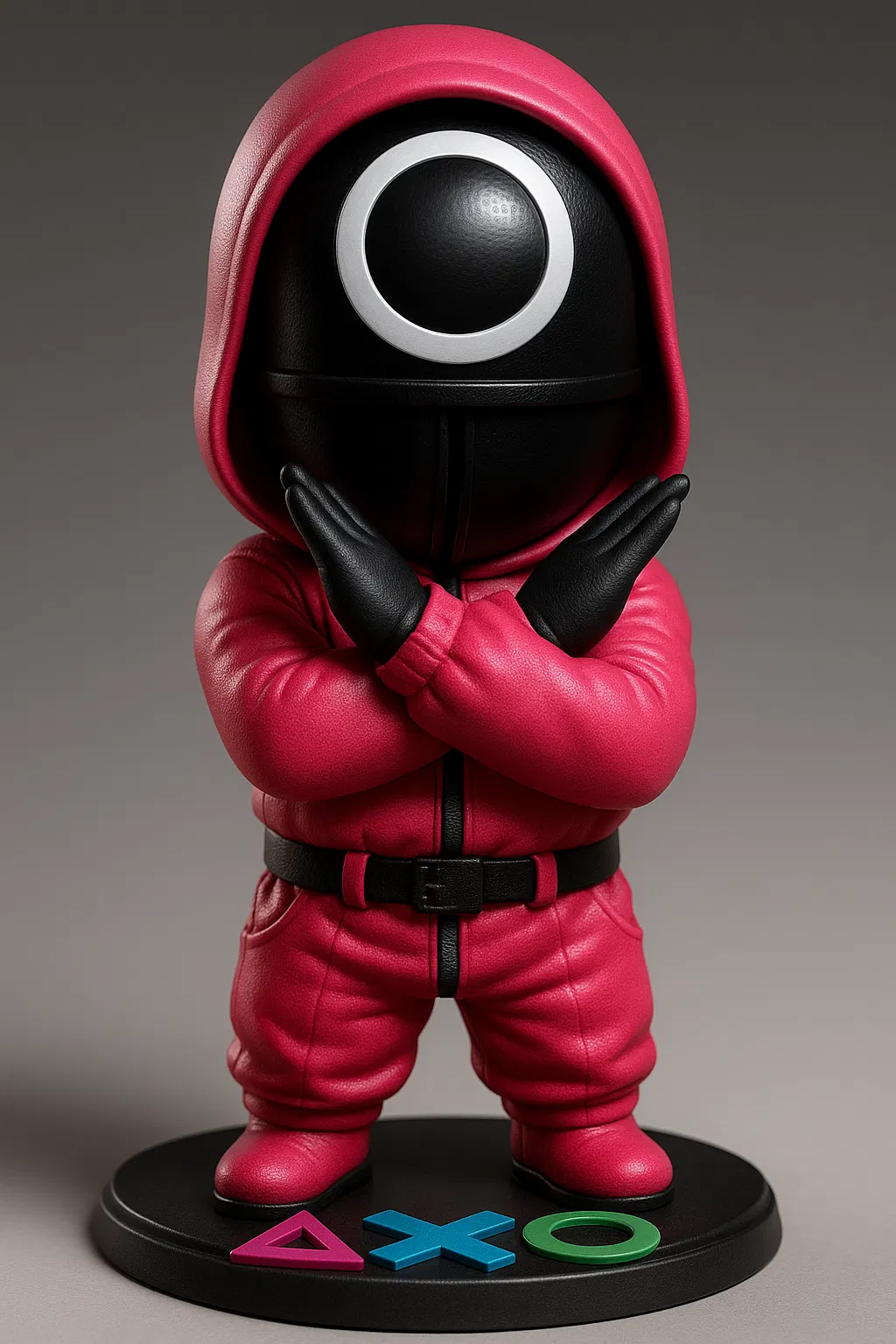 Mang sự hồi hộp của Squid Game về kệ trưng bày của bạn với mô hình chibi Game Guardian cực kỳ chi tiết này. Với tư thế khoanh tay đầy mạnh mẽ, mô hình sưu tầm này đi kèm một phần đế phẳng tượng trưng, được trang trí bằng các biểu tượng đặc trưng gồm hình tròn, hình tam giác và hình vuông. Sản phẩm cực kỳ phù hợp cho người hâm mộ, các nhà sưu tầm mô hình và những tín đồ đam mê in 3D!