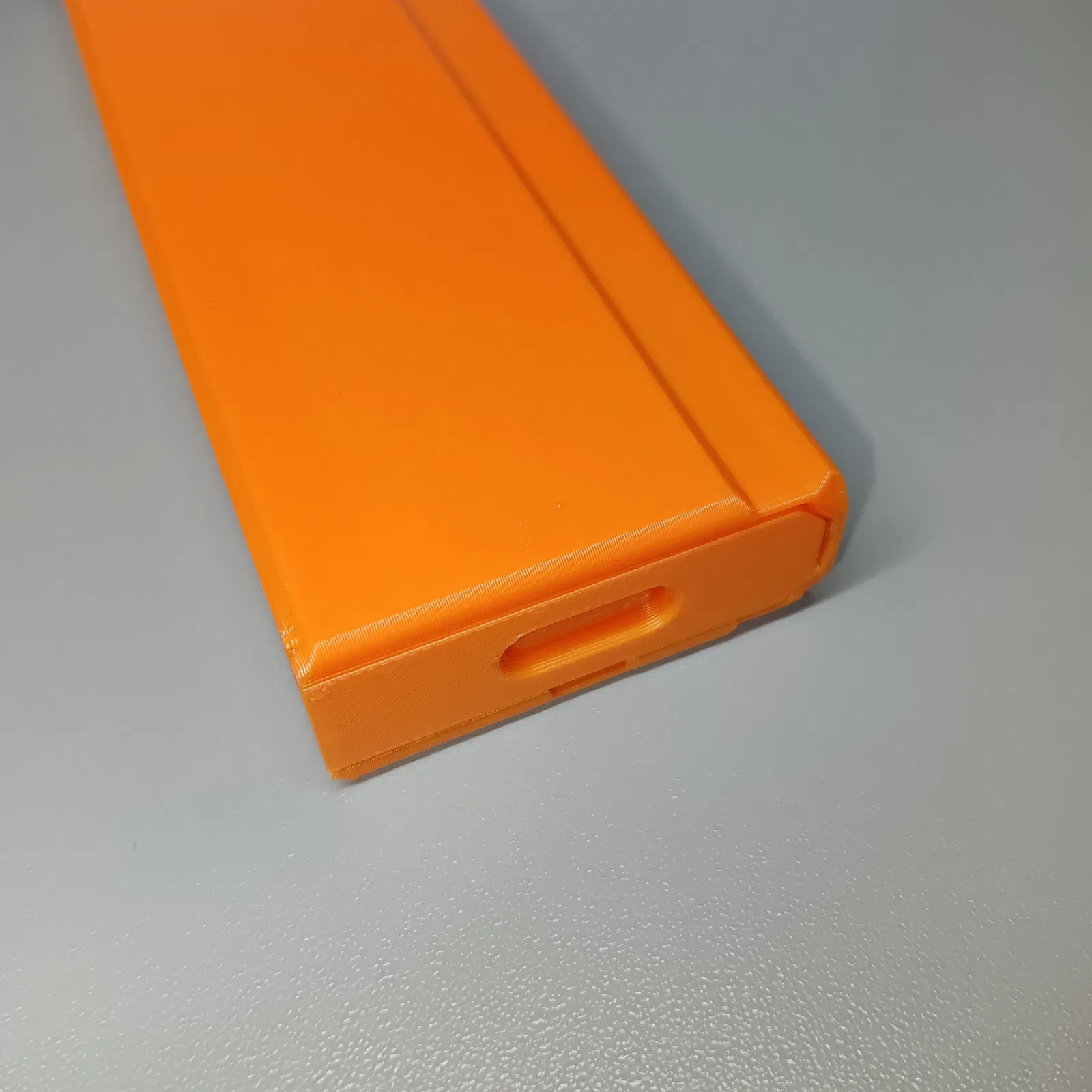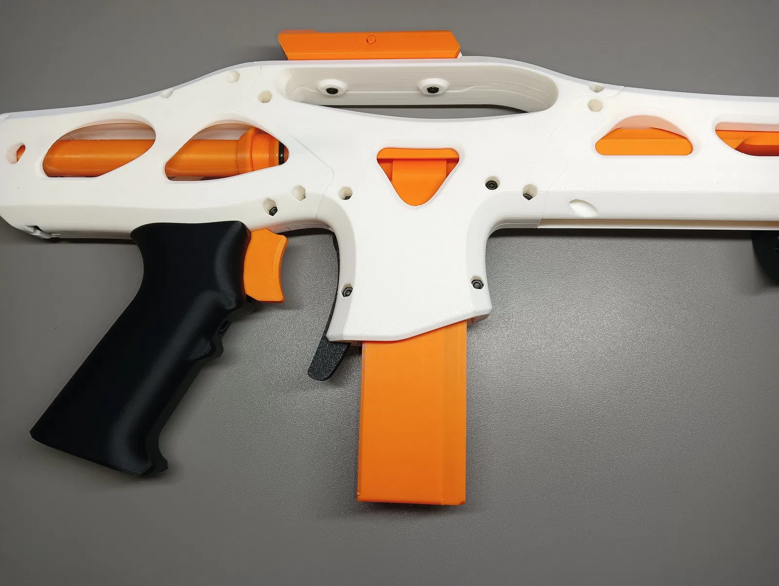 Vì chiếc Multi-Tool của tôi không vừa với thiết kế miệng băng đạn gốc (dù nó có thiết kế 'góc không cần support' rất hay), nên tôi đã sửa lại thành dạng hình chữ nhật tiêu chuẩn (đáng tiếc là kiểu này cần phải dùng support). Phiên bản này sẽ tương thích với nhiều loại blaster hơn nữa.