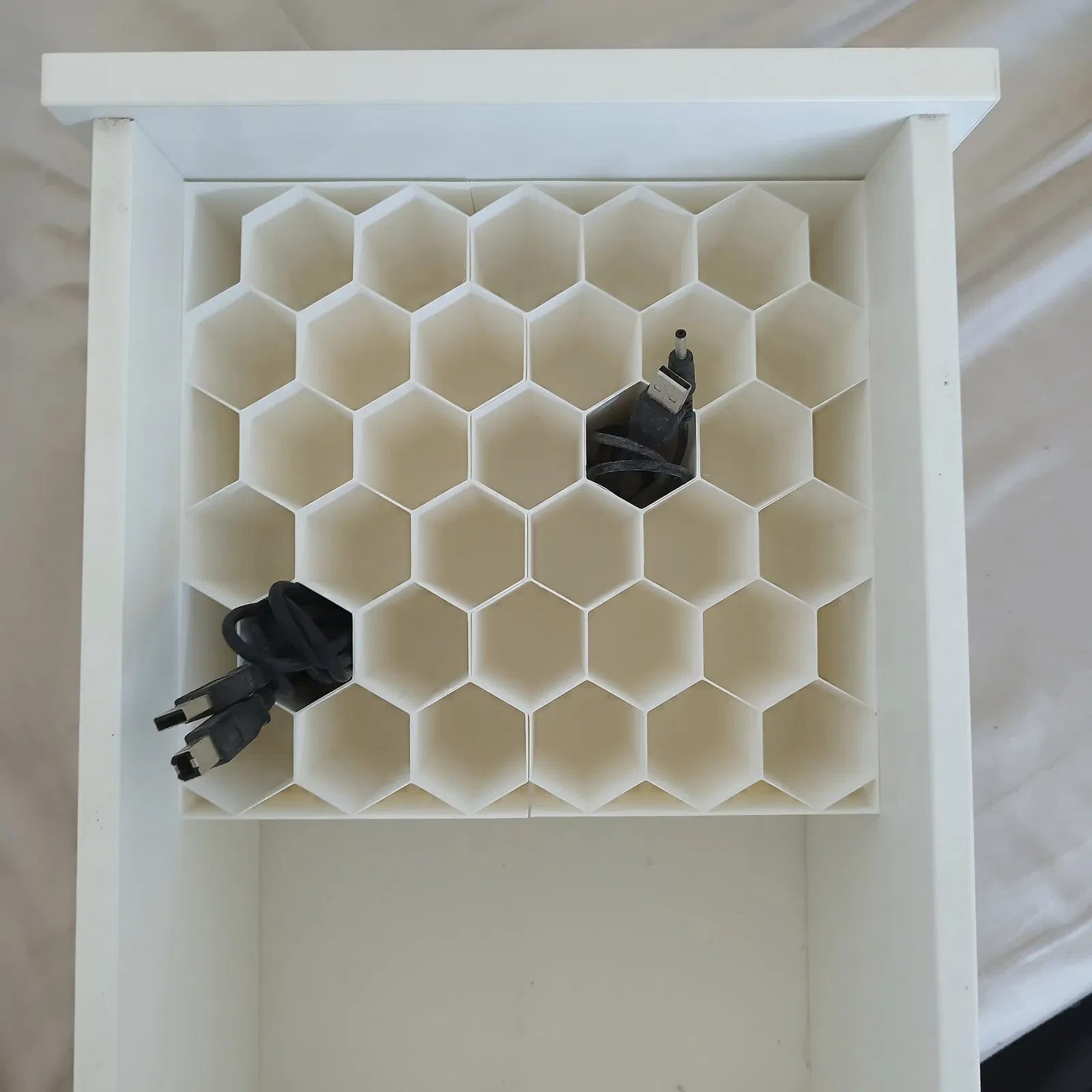 Đây là một bộ sắp xếp dây cáp dạng tổ ong tham số được thiết kế để vừa khít với ngăn kéo IKEA MICKE.