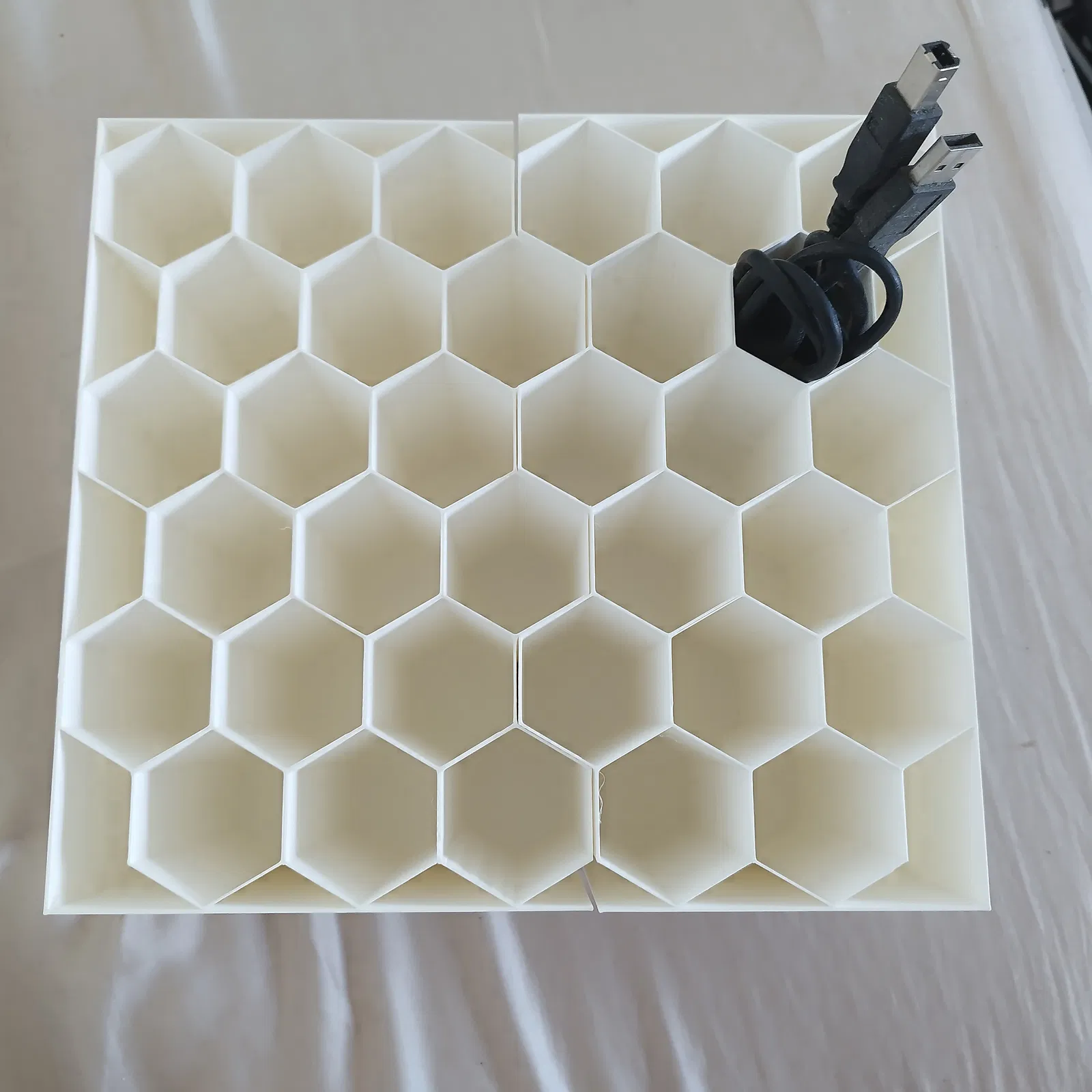 Các ngăn hình lục giác cực kỳ lý tưởng để sắp xếp cáp USB, bộ sạc, adapter, tai nghe, dongle, thẻ SD và các thiết bị điện tử nhỏ khác, giúp bạn dễ dàng nhìn thấy và lấy đồ nhanh chóng.