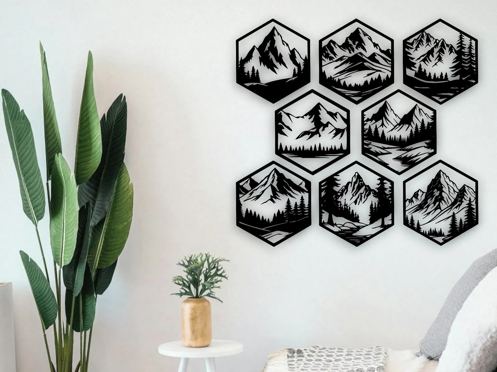 Thổi bừng sức sống cho không gian sống với bộ tranh treo tường hình lục giác lấy cảm hứng từ thiên nhiên và núi non hùng vĩ. Một thiết kế hiện đại, tinh tế, mang lại cảm giác bình yên và cân bằng cho căn phòng của bạn.