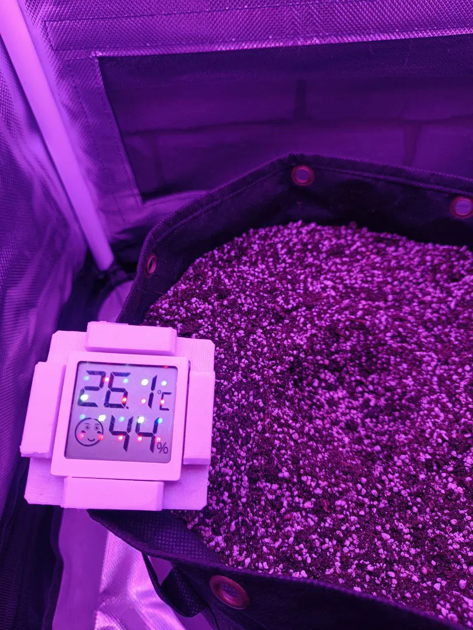 Sản phẩm được thiết kế với phần giá đỡ bên trên ôm sát thiết bị đo, kết hợp cùng phần cọc nhọn bên dưới giúp bạn dễ dàng cắm chặt vào các túi vải trồng cây, chậu đất hoặc bất kỳ bề mặt tơi xốp nào. Việc bố trí nhiệt ẩm kế gần sát môi trường đất giúp cung cấp dữ liệu về độ ẩm thực tế tại gốc cây, từ đó bạn có thể điều chỉnh chế độ tưới nước hoặc thông gió cho lều trồng một cách khoa học hơn. Đây là món đồ chơi 3D nhỏ gọn nhưng mang lại sự tiện ích cực kỳ cao cho những ai yêu thích tự động hóa và quản lý môi trường sống của cây cảnh.