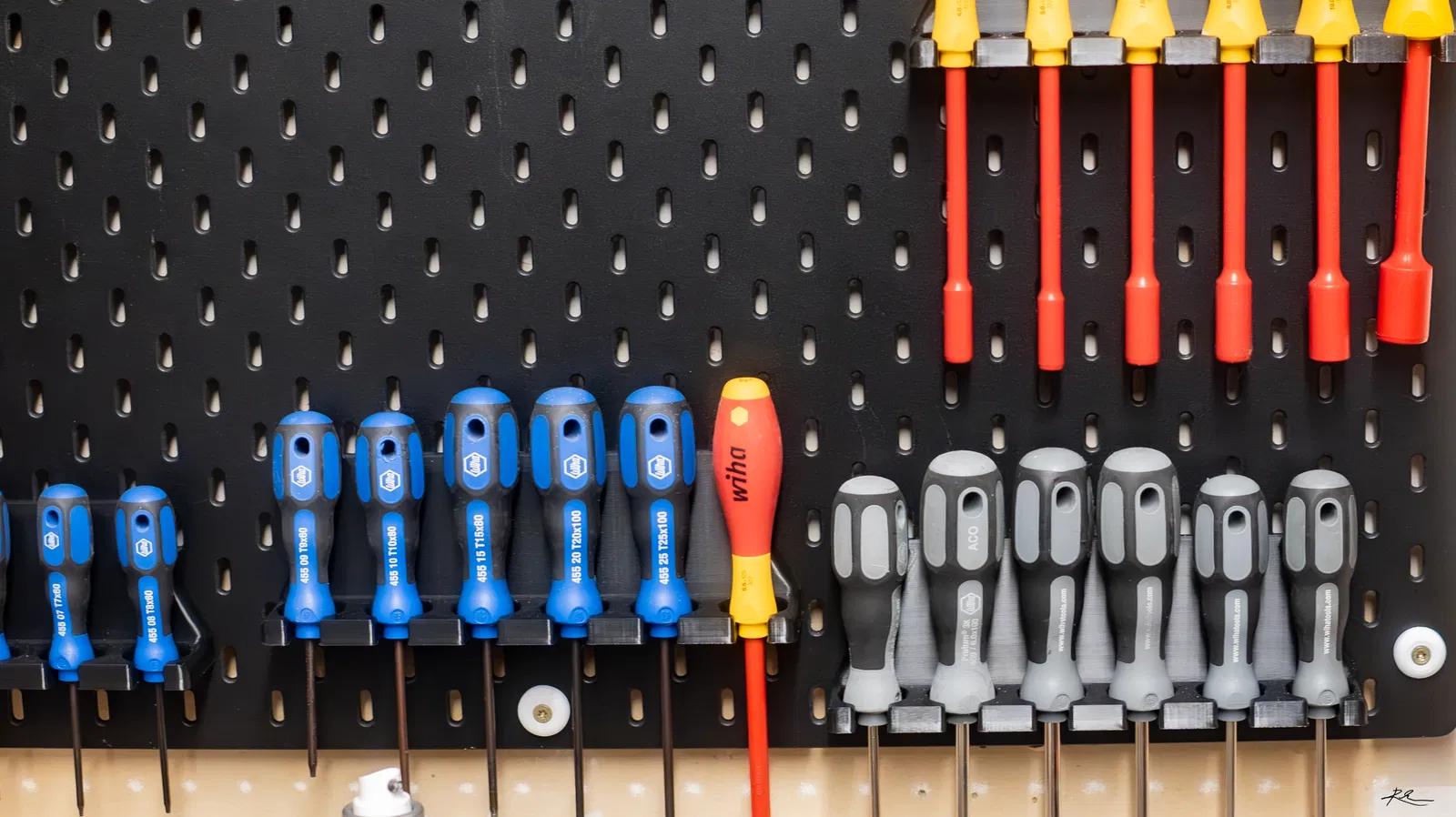 Một chiếc kệ chuyên dụng để sắp xếp các loại tua vít Wiha, đầu vặn ốc một cách gọn gàng trên bảng Skadis của bạn. Thiết kế dạng module giúp in dễ dàng và đảm bảo độ bền tối ưu. Phù hợp cho những ai yêu thích sự ngăn nắp cho góc làm việc.