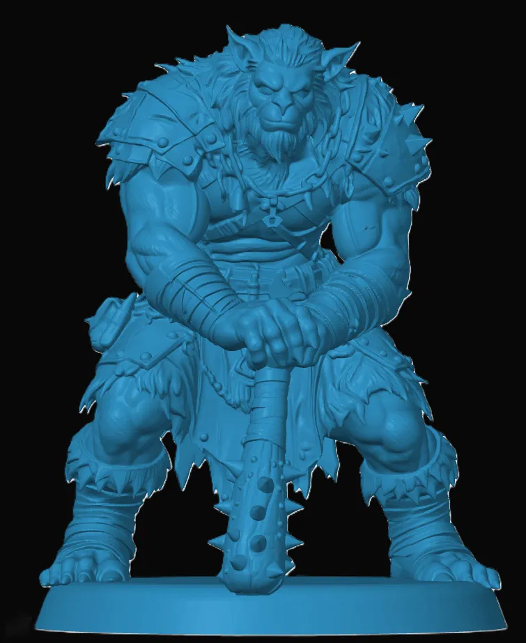Đây là thiết kế Bugbear Barbarian của mình. Mô hình chưa được căn chỉnh tỉ lệ cố định, bạn có thể tự điều chỉnh kích thước dựa trên quy tắc đo từ đế chân đến tầm mắt để phù hợp với các ván game RPG của mình.