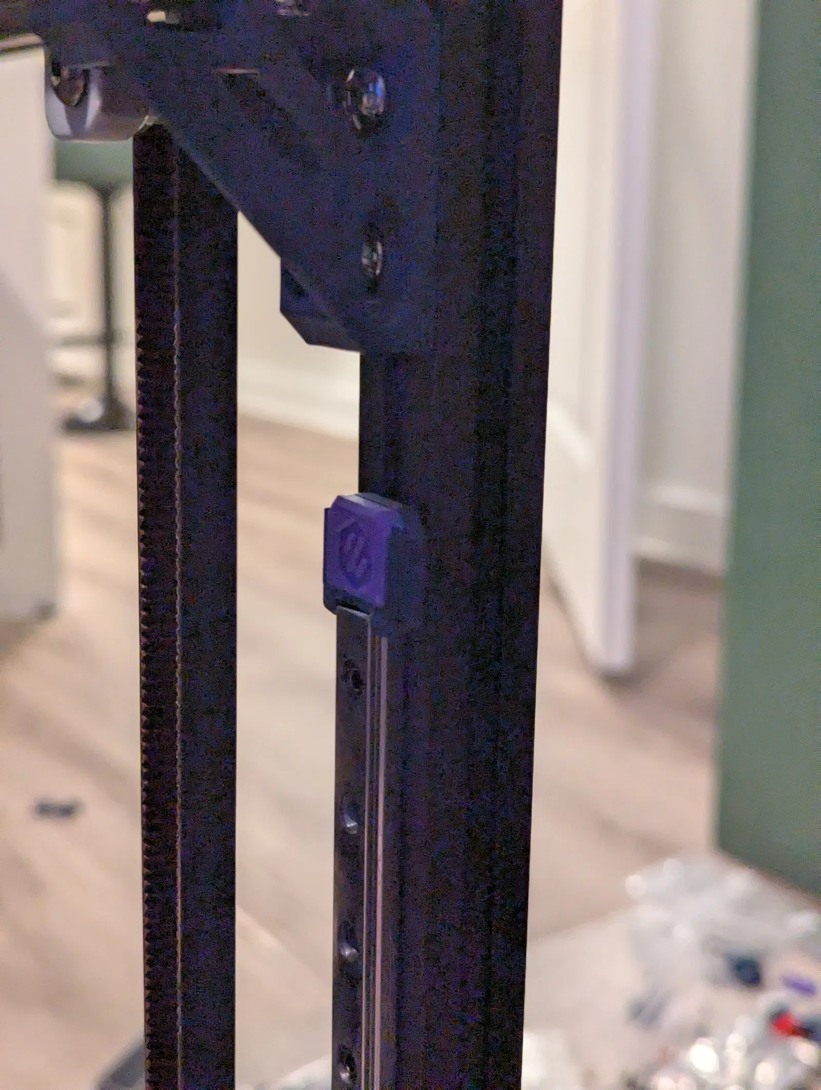 Việc lắp đặt linh kiện này cực kỳ đơn giản, chỉ cần trượt nhẹ vào vị trí mong muốn trên thanh ray là nó sẽ bám chắc chắn. Ngoài công dụng bảo vệ, chi tiết này còn mang lại tính thẩm mỹ cao, giúp che đi các lỗ bắt vít trống trải, tạo cảm giác chuyên nghiệp và sạch sẽ hơn cho khung máy. Anh em có thể in bằng nhiều màu sắc khác nhau để tạo điểm nhấn cá nhân hóa cho chiếc máy in 3D của mình mà không lo làm ảnh hưởng đến độ chính xác cơ khí.