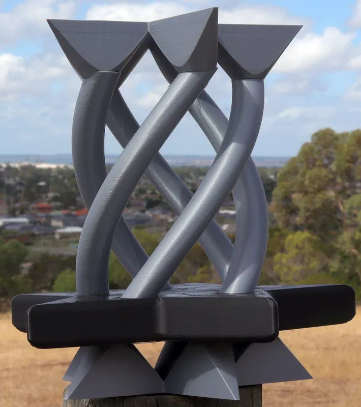 Một mẫu in puzzle cỡ lớn với hình ngôi sao trượt trên năm ống được sắp xếp theo hình xoắn ốc. Thử thách của mẫu này là làm sao để in mà không cần dùng AMS hay bộ đổi công cụ (tool changer) gây lãng phí nhựa.