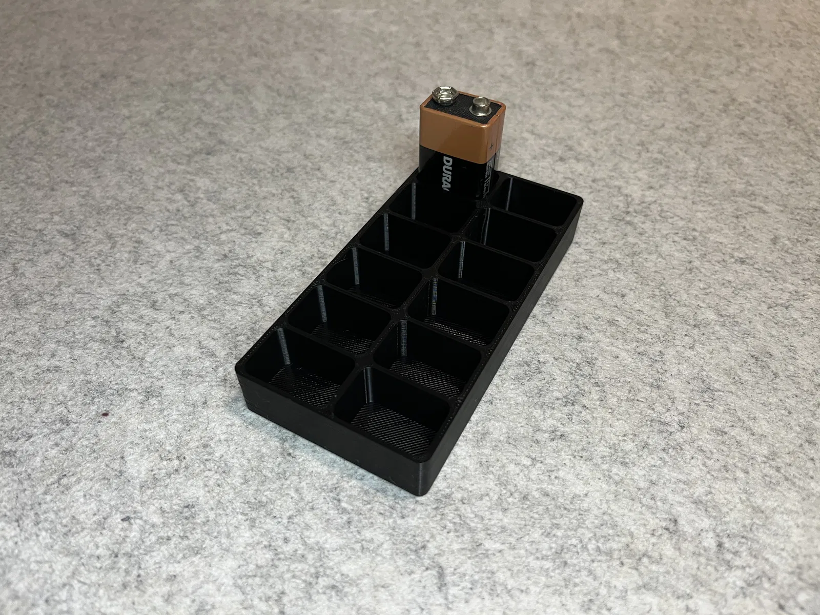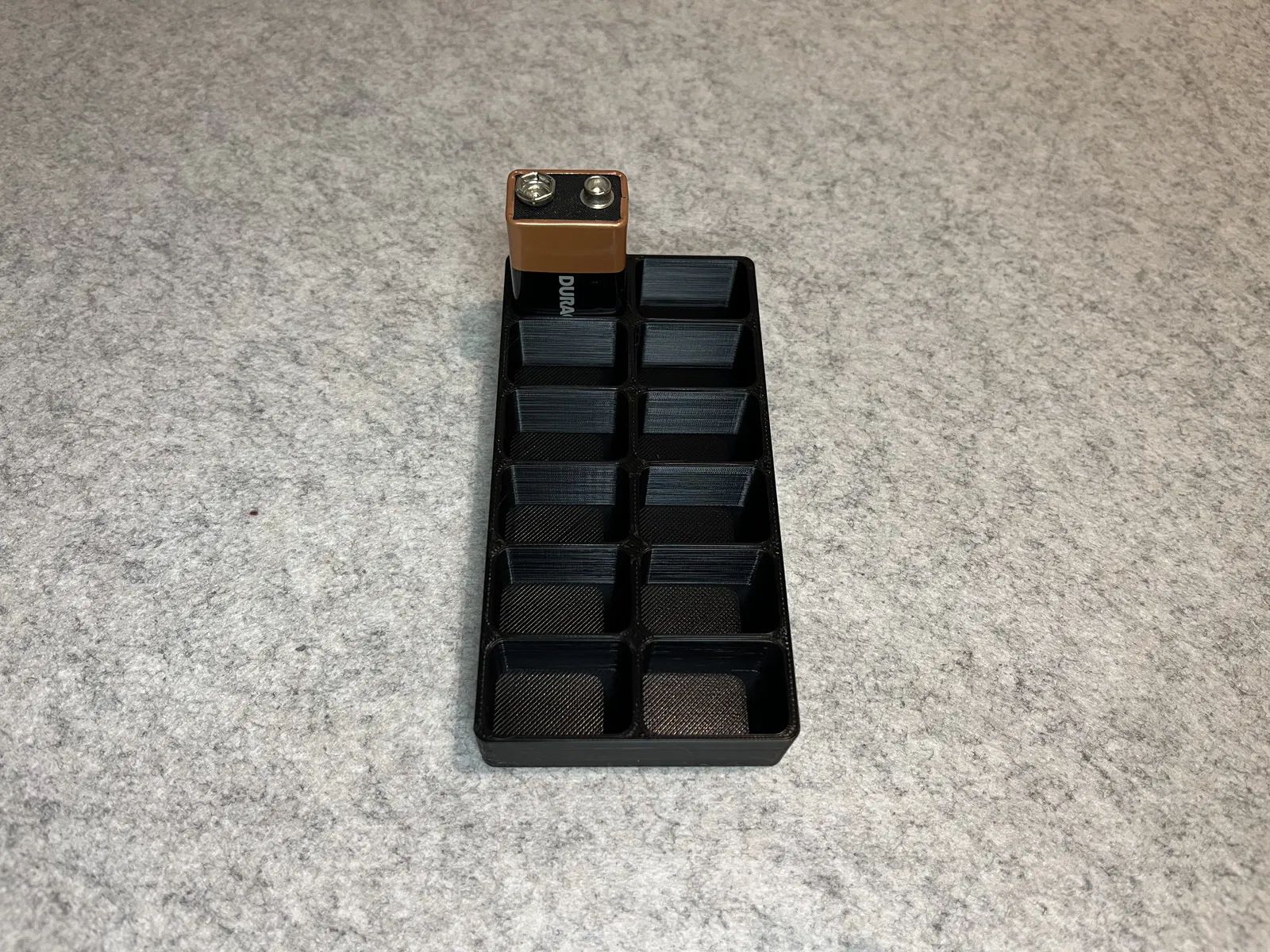 - Sức chứa tối đa: Khay được thiết kế chính xác để giữ vừa vặn 12 viên pin 9V, giúp bạn quản lý số lượng pin dễ dàng.