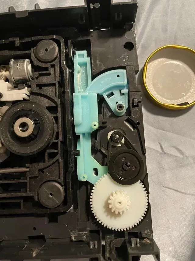 Khi thay thế bánh răng này, hãy chắc chắn làm sạch kỹ lưỡng khu vực mà bánh răng này vừa khít để đảm bảo không còn các mảnh nhựa từ những chiếc răng bị thiếu. Cũng tốt nhất là thay thế "dây cao su" trong khi làm việc này. Đừng quên sử dụng mỡ để đảm bảo hoạt động trơn tru. Tôi đã sử dụng lithium trắng, cái mà đã hoạt động tốt với tôi cho đến nay.