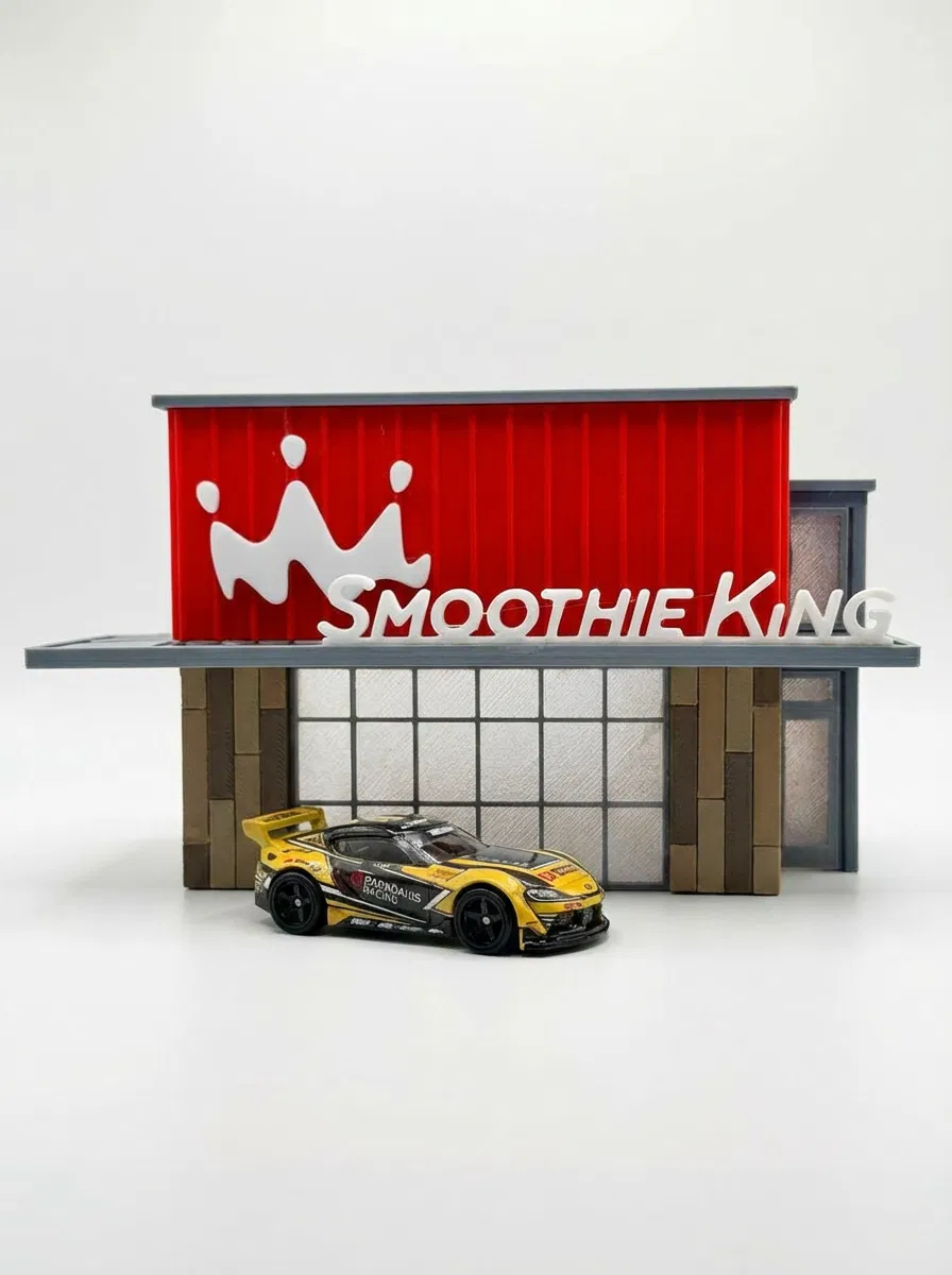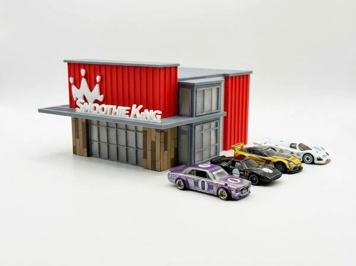 Nếu bạn là một người đam mê sưu tầm xe mô hình tỷ lệ 1/64 như Hot Wheels hay các dòng xe die-cast khác, thì việc tạo ra một không gian trưng bày sống động là điều vô cùng thú vị. Mô hình cửa hàng Smoothie King này được thiết kế đặc biệt để mang đến nét hiện đại, đầy màu sắc cho sa bàn (diorama) của bạn. Với những đường nét được tái hiện chi tiết từ các cửa hàng thực tế, đây sẽ là điểm nhấn hoàn hảo bên cạnh bộ sưu tập xe cộ đầy kiêu hãnh của bạn.