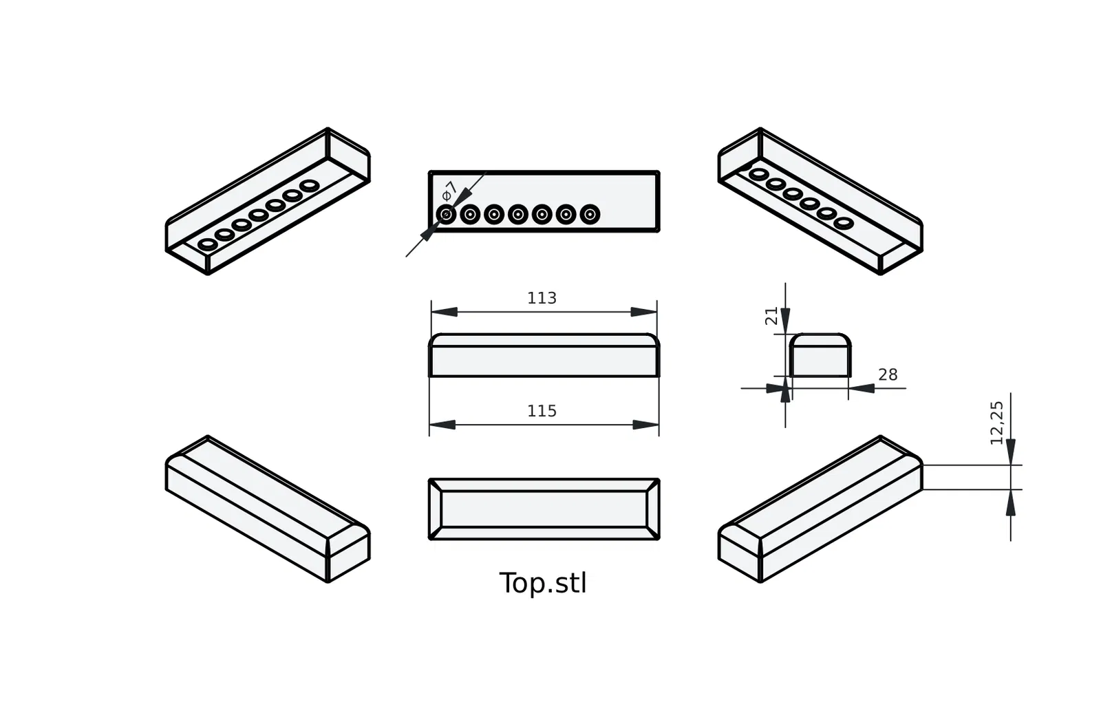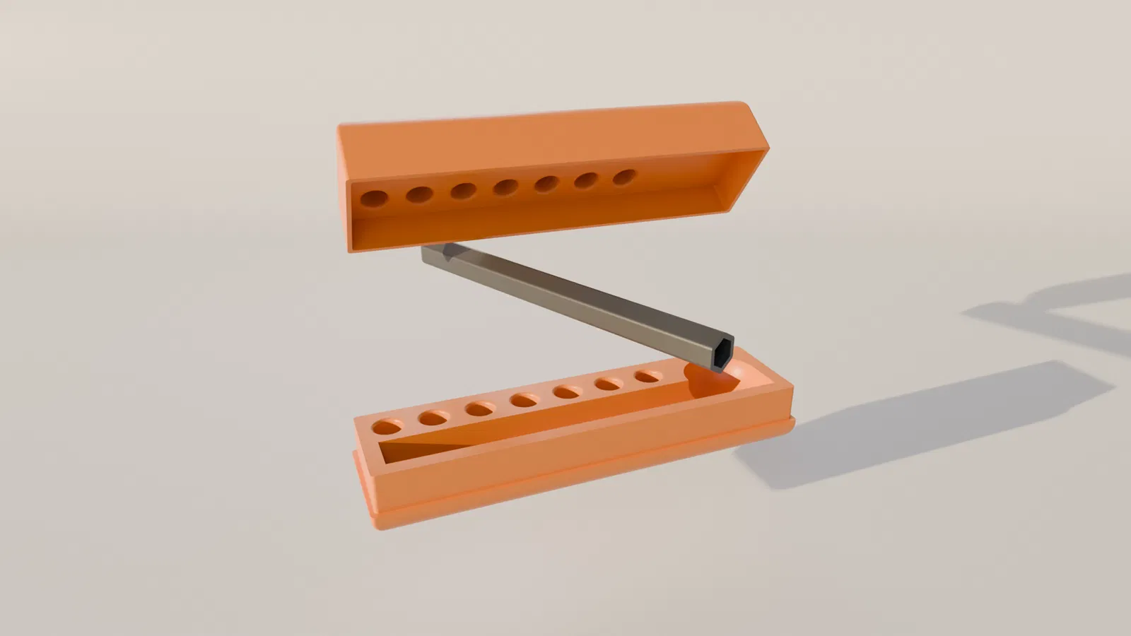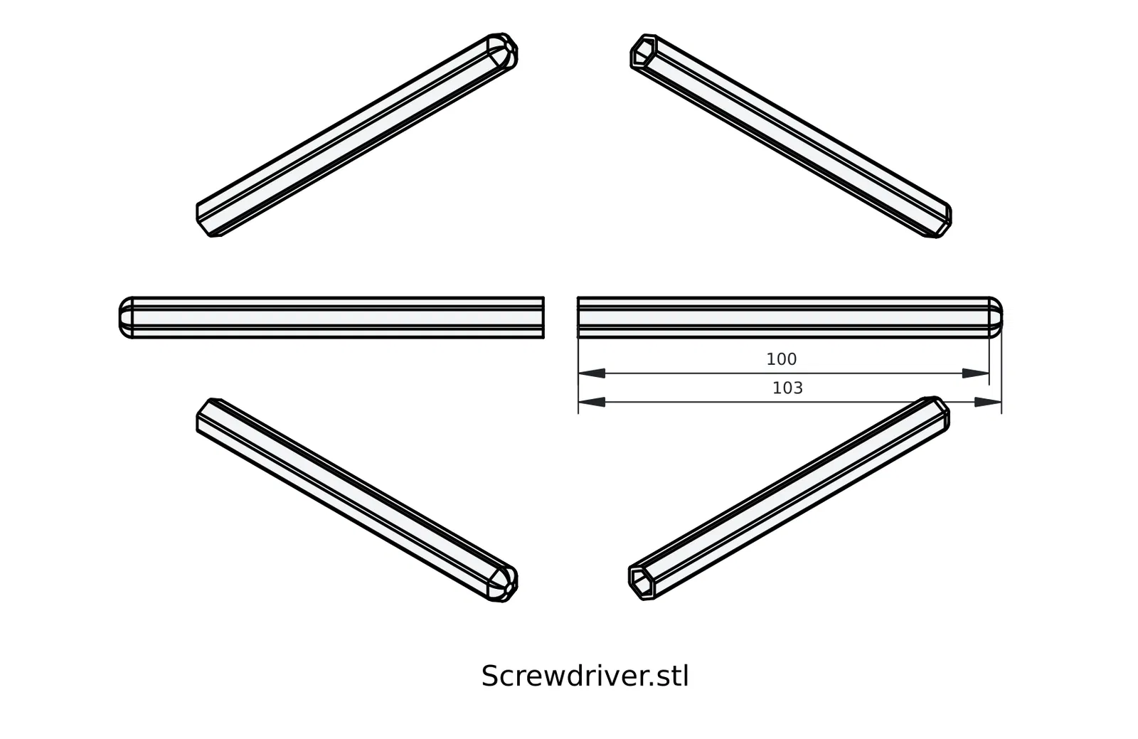 Một bộ hộp đựng du lịch theo phong cách tối giản hiện đại kèm theo một chiếc tua vít được in 3D. Bạn chỉ cần bỏ các loại đầu vít mà mình thích hoặc đang cần vào trong là xong! Rất hoàn hảo khi bạn đi du lịch, đi phượt, leo núi, hoặc đơn giản là để làm vật dụng edc nhỏ gọn trong xe hơi của mình. Kích thước của hộp khi đóng lại là 115x28mm (khoảng 4.5x1.1 inch). Thiết kế này tương thích với các loại đầu vít tiêu chuẩn.