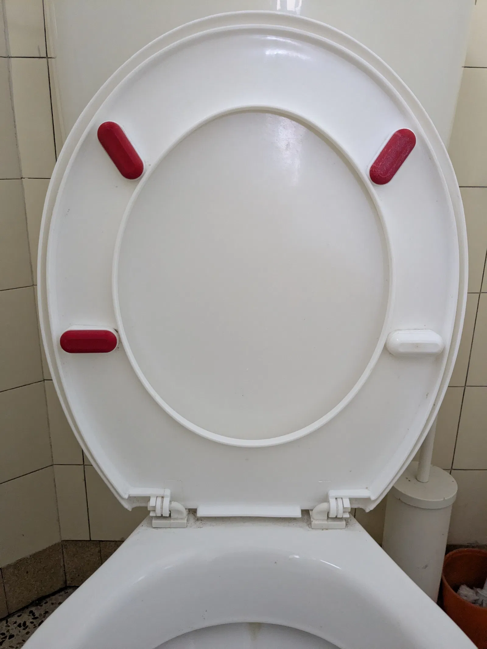 Do mấy cái nắp bồn cầu giá rẻ mua ở Bauhaus cứ bị rơi mất mấy miếng đệm cao su nằm giữa nắp và sứ, nên mình đã tự thiết kế và dán miếng thay thế cho vừa khít với mẫu này.