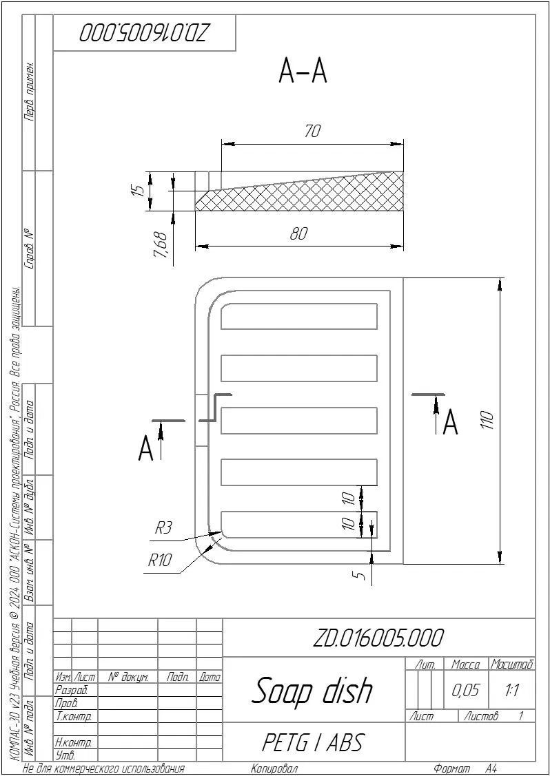 Sản phẩm này được thiết kế với cấu trúc tinh tế gồm các thanh đỡ song song, tạo khoảng hở tối ưu để không khí lưu thông bên dưới bánh xà phòng. Phần cạnh khay được bo tròn mềm mại, không chỉ mang tính thẩm mỹ cao mà còn rất an toàn khi sử dụng hàng ngày. Đây là một món đồ gia dụng nhỏ gọn, cực kỳ hữu ích cho những ai yêu thích sự ngăn nắp và muốn tối ưu hóa không gian phòng tắm của mình chỉ với vài giờ in 3D.