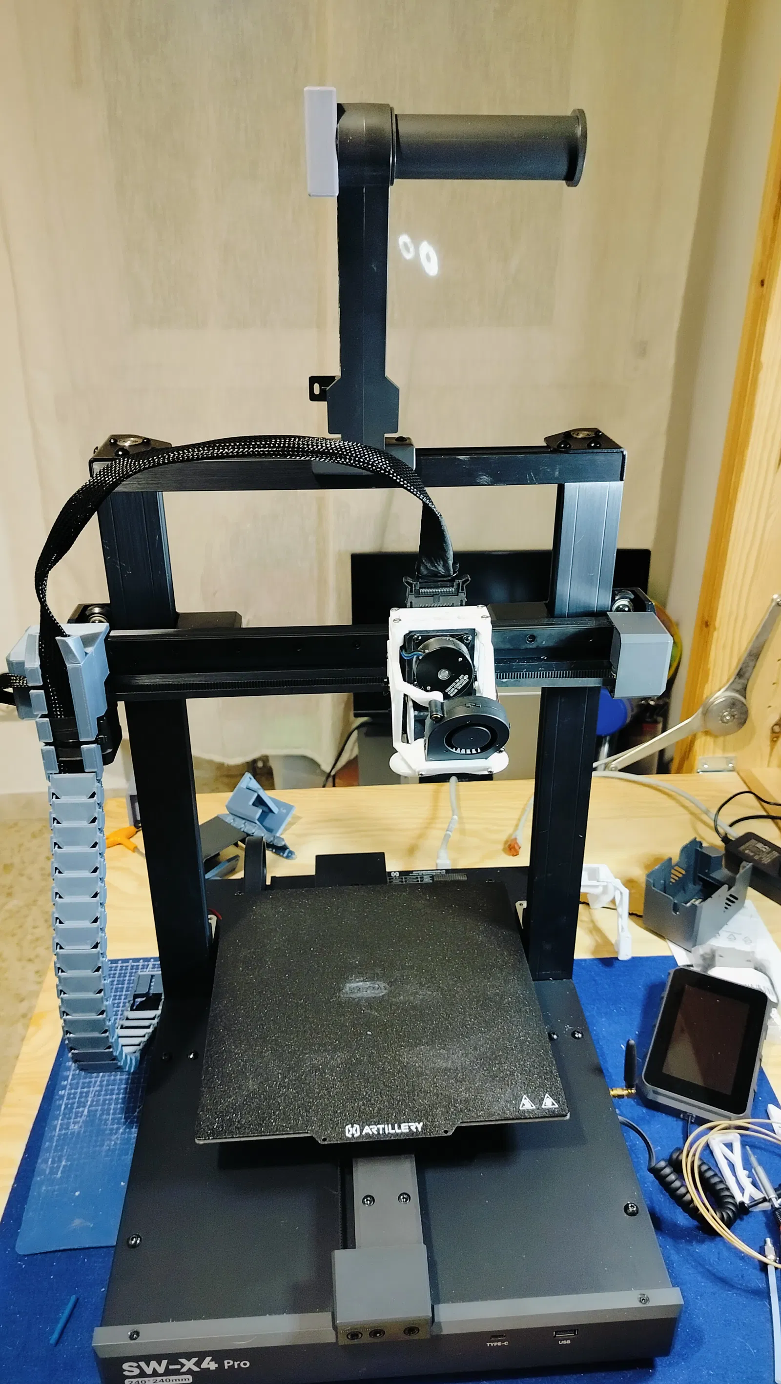 Trên dòng máy Artillery Sidewinder X4 Pro/Plus, một điểm yếu chính là cáp ribbon của đầu in (hotend) thường hay cạ vào thanh gantry, lâu ngày dễ gây hư hỏng. Dự án này giúp bạn dời vị trí cáp này ra phía trước máy.