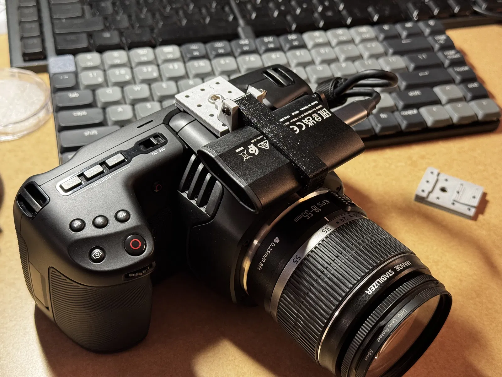 Thiết kế ngàm gắn phía trên đa năng cho BlackMagic Pocket Cinema Camera 6K, kèm theo giá đỡ SSD Adata SD810. Sử dụng chất liệu TPU để giá đỡ bám tốt hơn, chi tiết tương thích với chuẩn ốc M3 thông dụng.