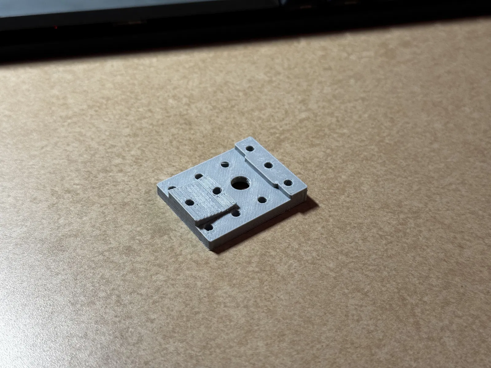 Ngàm gắn phía trên cho nhiều phụ kiện, mình đã thiết kế thêm giá đỡ SSD cho loại Adata SD810. Các lỗ bắt ốc M3 được bố trí theo dạng lưới với khoảng cách 1cm mỗi lỗ. Giá đỡ SSD nên được in bằng chất liệu TPU để bám chắc hơn, dùng ốc M3 dài 22mm và đai ốc để cố định, còn phần ngàm chính thì nên dùng ốc đầu chìm (countersunk screws) nhé.
