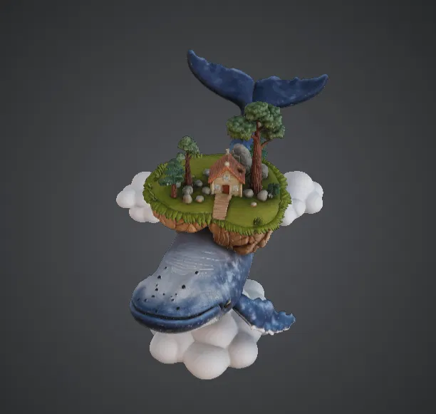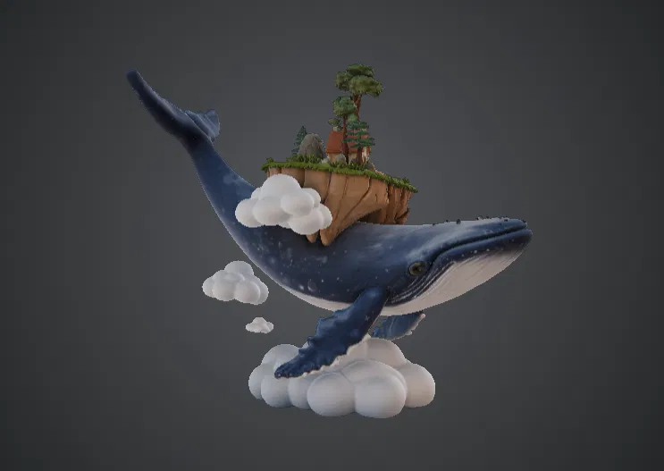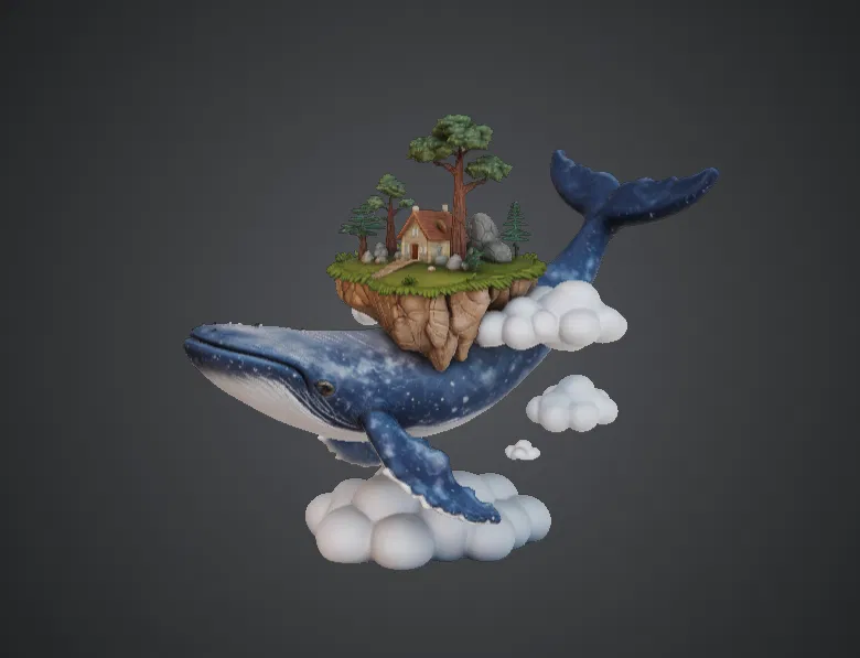 Khám phá Sky Whale Floating Island, một mô hình giả tưởng đầy mê hoặc với chú cá voi bay hùng vĩ cõng trên lưng hòn đảo nhỏ, ngôi nhà ấm cúng và cảnh quan tuyệt đẹp.