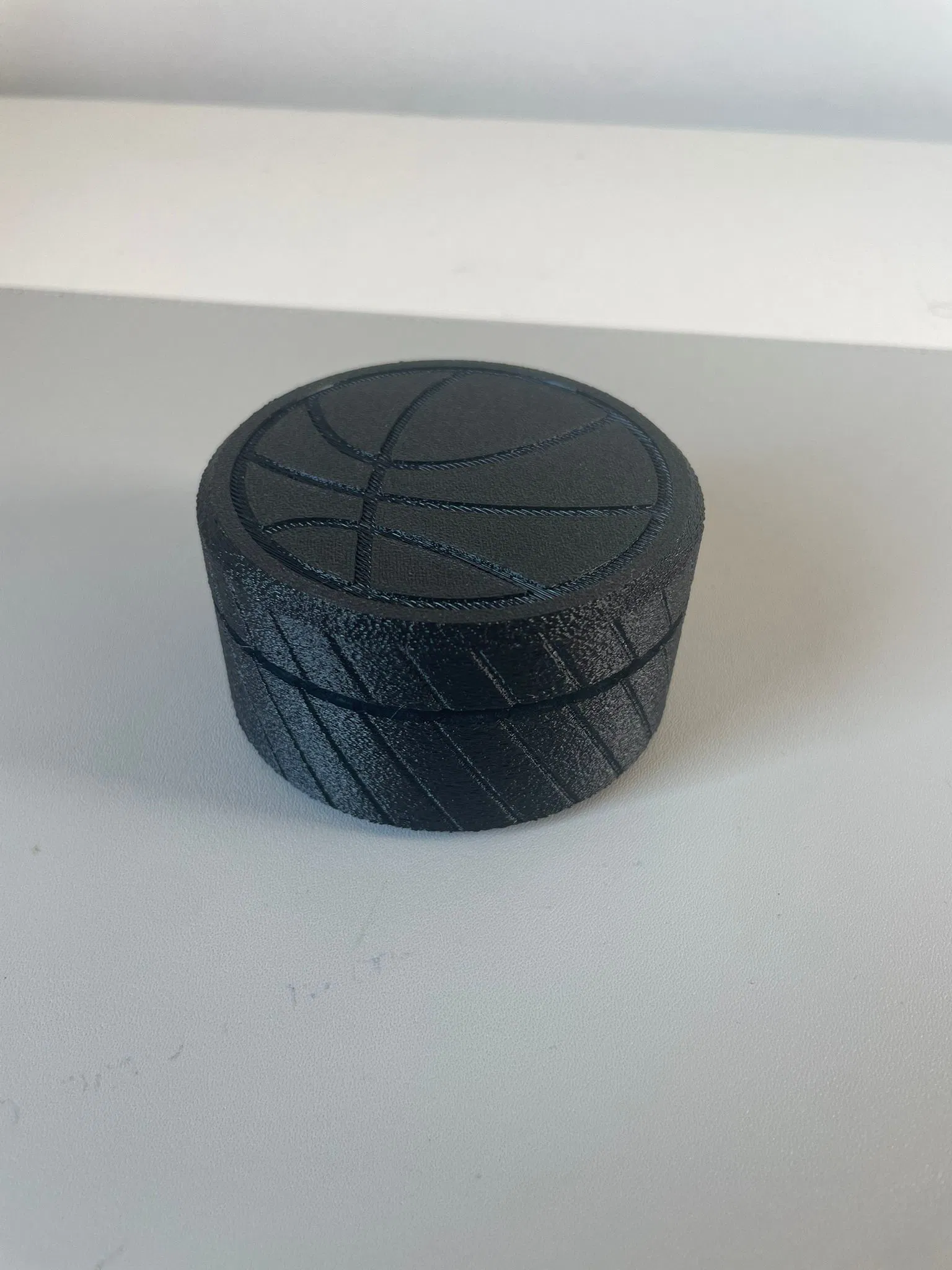Hộp đựng bỏ túi tiện lợi, đi kèm với hai phiên bản nắp: một loại trơn đơn giản và một loại có họa tiết bóng rổ độc đáo. Sản phẩm phù hợp để in bằng cả chất liệu PLA và PETG.