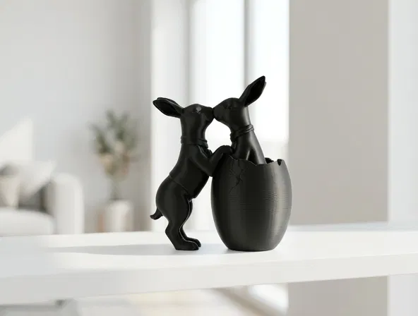 Mô hình điêu khắc dễ thương ghi lại khoảnh khắc lãng mạn giữa hai chú thỏ trong vỏ trứng. Thiết kế tinh tế, hiện đại, là điểm nhấn tuyệt vời cho không gian trang trí Lễ Phục sinh của bạn. Dễ dàng in ấn với cài đặt tiêu chuẩn.