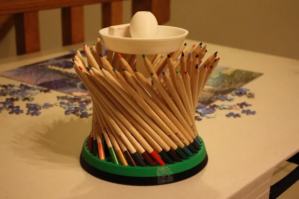 Đây là một chiếc carousel bút chì màu xoay với chỗ cho tối đa 72 bút chì, một giỏ cho gọt bút và tẩy, và một tay cầm để dễ dàng mang theo. Đế có mười sáu viên bi 9.5mm (3/8") để nó có thể xoay tự do.