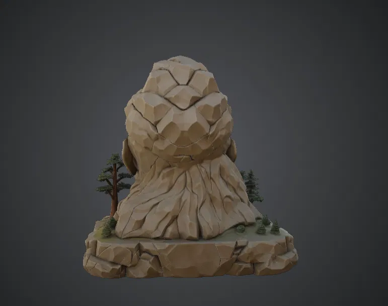 Mô hình Ancient Stone Face Monument tái hiện lại phần đầu khổng lồ của một bức tượng bị lãng quên, đang nằm nghỉ ngơi giữa một vùng đất hoang tàn đầy sương gió. Những vết nứt chạy dọc trên bề mặt đá, gợi lên sự bào mòn và suy tàn qua hàng thế kỷ khi thiên nhiên dần dần bao phủ và chiếm lấy di tích này. Những cái cây nhỏ, các tảng đá và những bậc thang uốn lượn bao quanh phần đế của khuôn mặt khổng lồ, tạo cảm giác như nơi đây từng là điểm dừng chân của những lữ khách khám phá những tàn tích đầy bí ẩn. Tác phẩm điêu khắc này khơi gợi sự tò mò về một nền văn minh cổ đại, nơi những bức tượng kỳ vĩ giờ đây chỉ còn nằm chìm một phần dưới lòng đất.