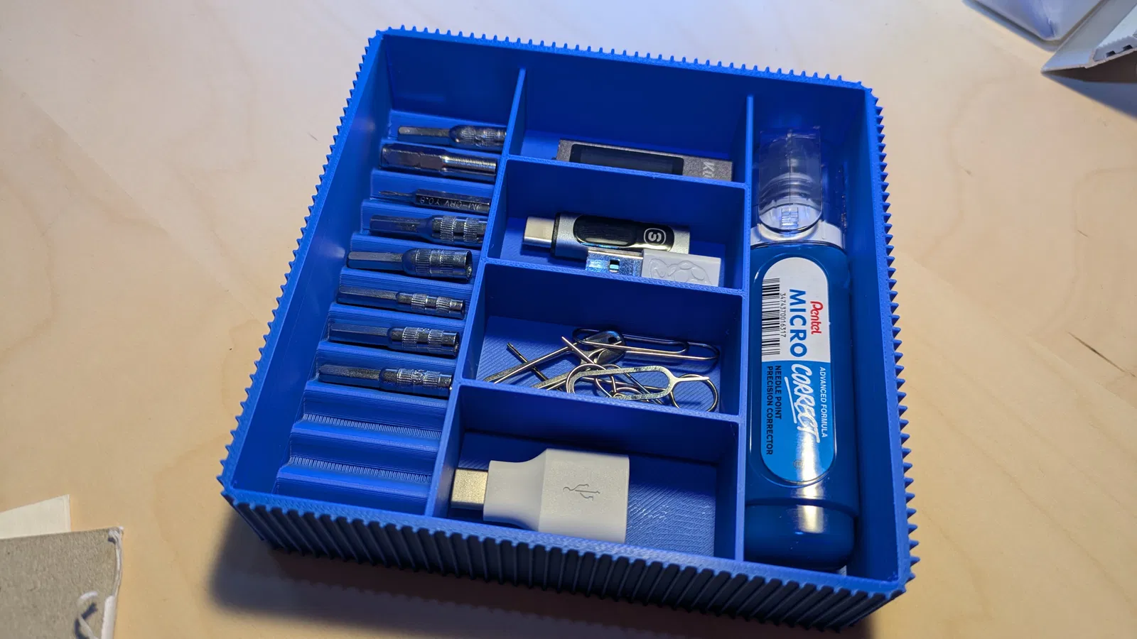 tray.scadcho các kích thước tùy chỉnh độc lập vàtray_gridfinity.scadđể tích hợp liền mạch vào hệ sinh thái Gridfinity. -