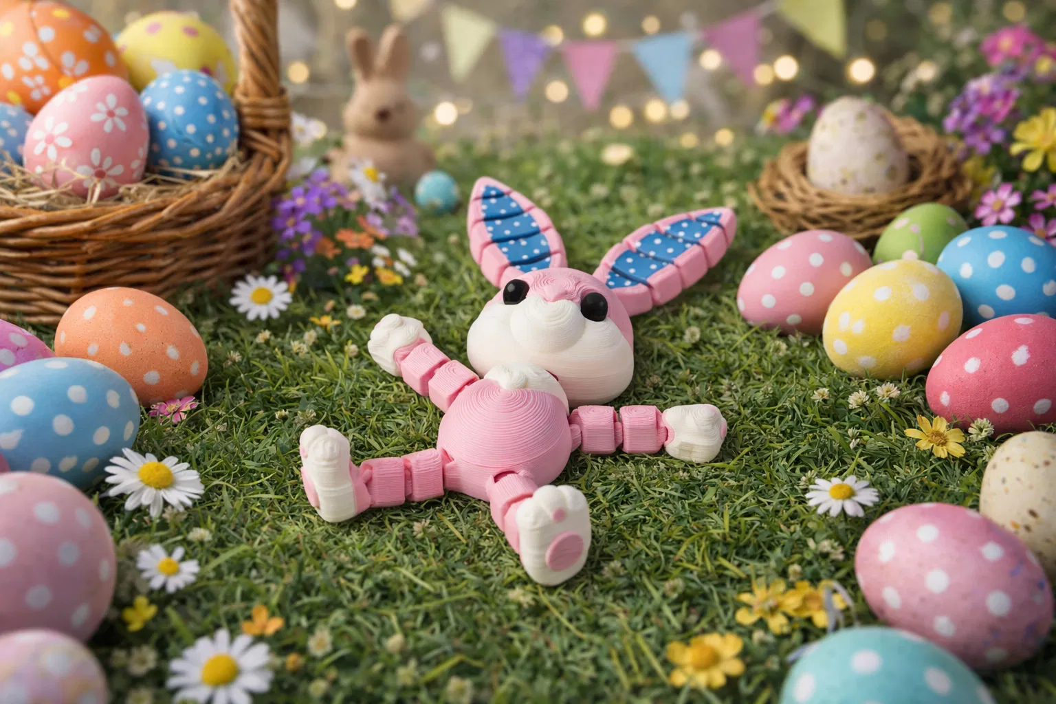Gặp gỡ chú Thỏ Phục Sinh Flexi - mẫu đồ chơi cử động linh hoạt, in liền khối đầy thú vị. Sản phẩm hoàn hảo để trang trí bàn làm việc, làm quà tặng dịp Lễ Phục Sinh hoặc đồ chơi giải trí cho mọi lứa tuổi. Dễ in, không cần hỗ trợ phức tạp.