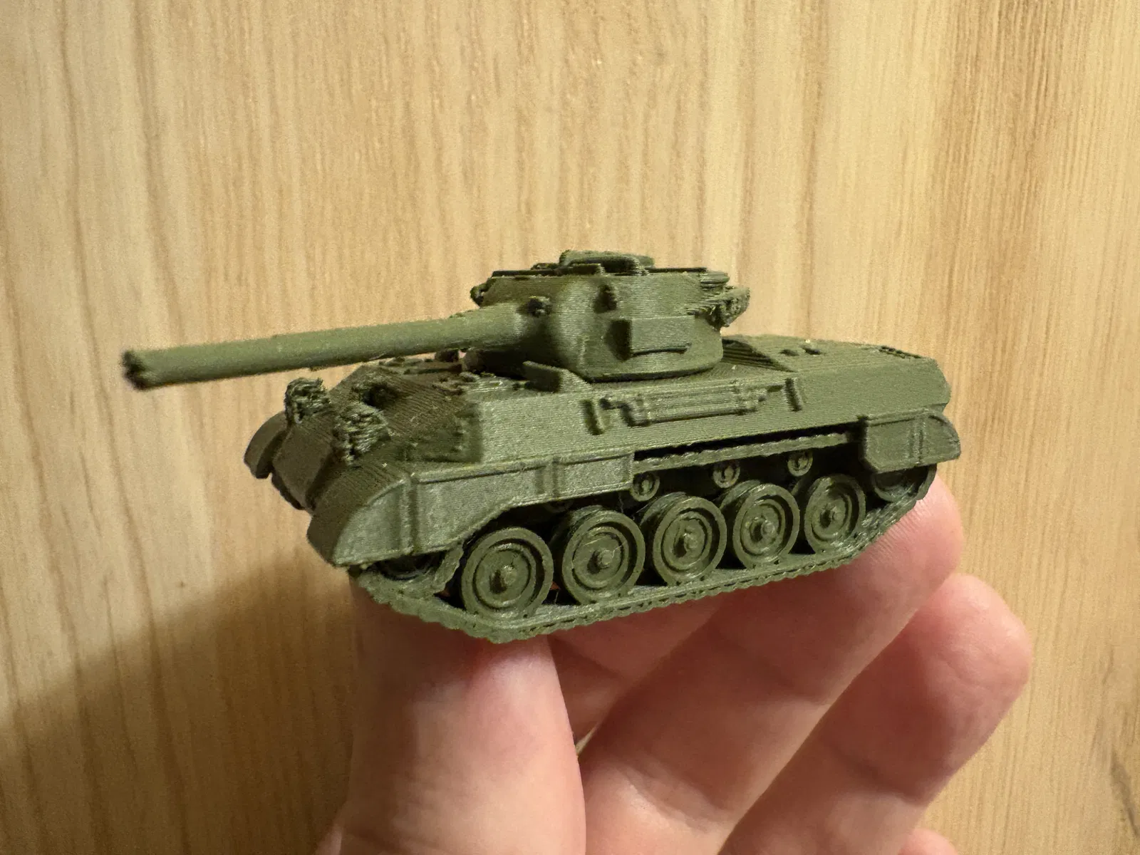 Đây là bản remix từ mẫu xe tăng M18 Hellcat của TigerAce1945. Để in trên con Mk4 của mình được dễ dàng hơn, mình đã tách mẫu ra thành nhiều phần và sắp xếp lại sao cho hợp lý. Mình cũng đã chỉnh lại tỉ lệ về HO Scale (1/87) để có thể trưng bày cùng với mô hình xe lửa của mình, đồng thời thiết kế thêm hốc để gắn nam châm 6x3mm giúp tháp pháo có thể xoay được. Ngoài ra, mình đã sửa lại phần xích, làm vát các bánh chịu lực và bánh dẫn động một góc 45 độ để in cho nhẹ nhàng hơn (giảm bớt lượng support và đỡ cực hơn nhiều khi tháo gỡ).
