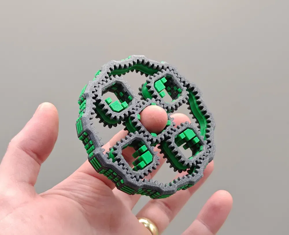Điểm đặc biệt nhất của mô hình này chính là thiết kế in một lần (print-in-place). Bạn không cần phải tốn công lắp ráp từng linh kiện nhỏ, mà sau khi in xong là có thể sử dụng được ngay. Các bánh răng bên trong được thiết kế với độ chính xác cao, đảm bảo hoạt động mượt mà ngay khi vừa lấy ra khỏi bàn in. Sự kết hợp giữa các khối hình học vuông vức và cơ chế chuyển động quay tròn tạo nên một vẻ đẹp cơ khí rất hiện đại và thu hút, chắc chắn sẽ khiến bạn muốn xoay nó mãi không thôi.