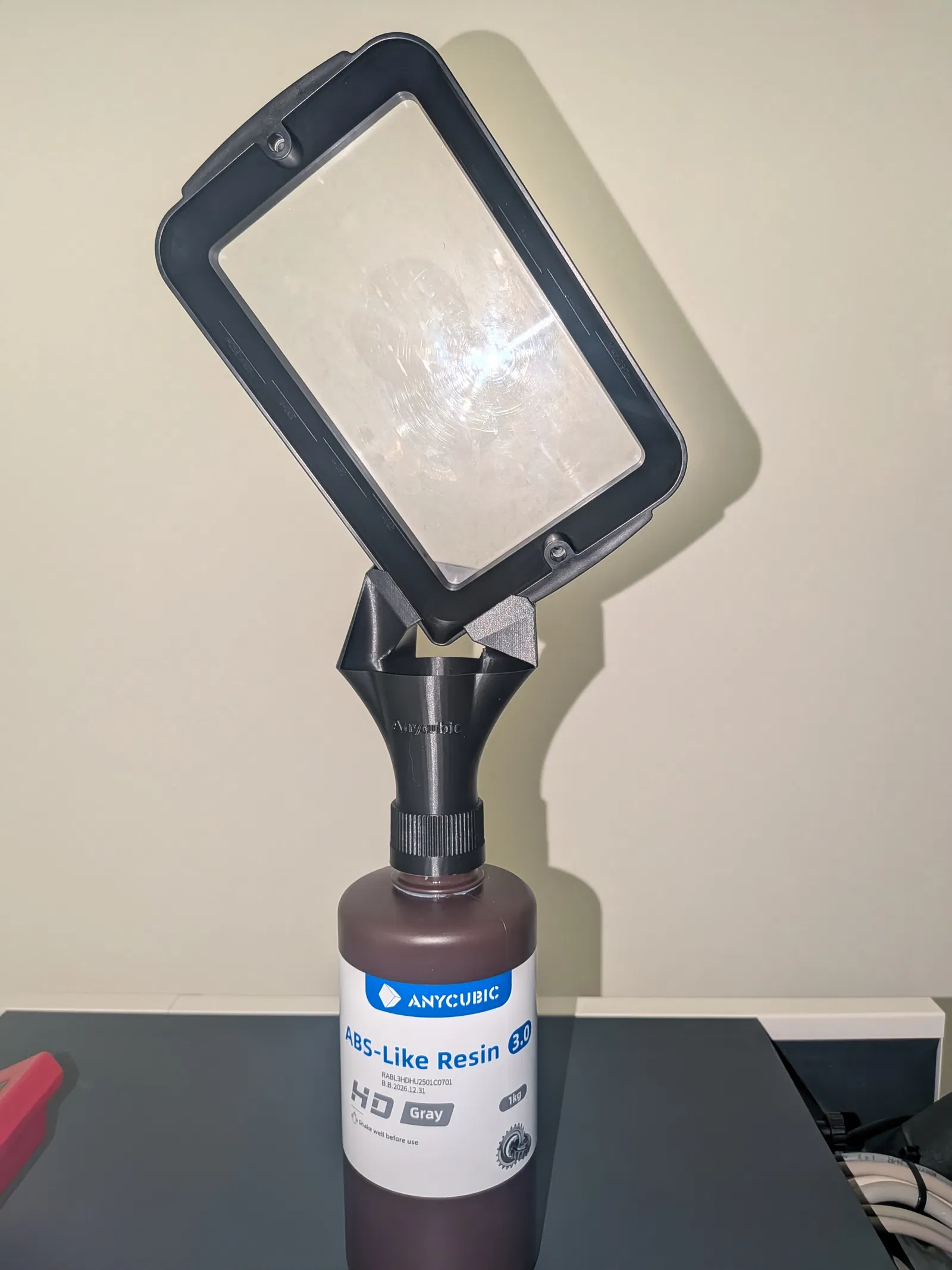 Mình đã thiết kế một cái phễu lọc nhựa resin tích hợp giá đỡ nhỏ giọt dành riêng cho khay đựng nhựa của máy in Anycubic Photon Mono 4 Ultra. Phụ kiện này giúp bạn đặt ngược khay nhựa trực tiếp lên miệng chai nhựa Anycubic, nhờ đó phần nhựa thừa sẽ chảy ngược lại vào chai một cách gọn gàng và sạch sẽ.